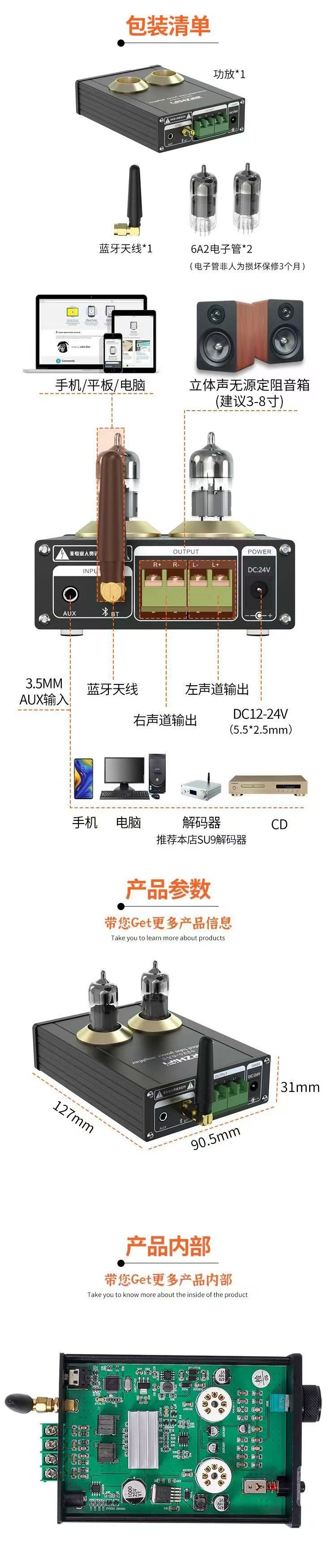 | Color | Weiliang tpa-6a2 tube amplifier (without power supply),Weiliang tpa-6a2 tube amplifier (with 19v 3.42a power supply),Tpa-6a2 tube amplifier plus power supply plus a pair of small speakers,A pair of caton two-way passive small speakers |