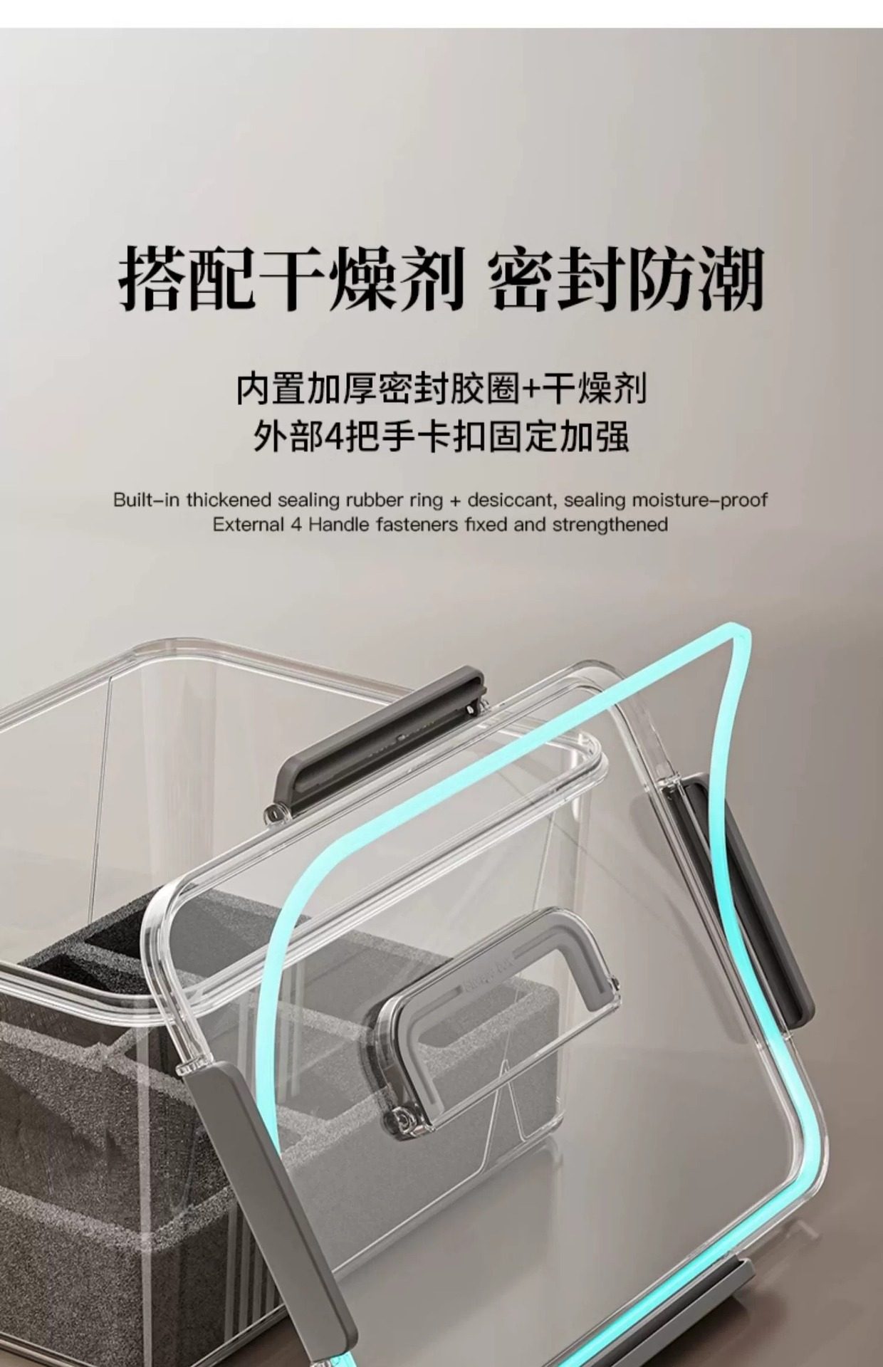 | Color | Transparent white [upgraded four-buckle sealing model with handle] medium size + desiccant x5,Transparent white [upgraded four-buckle sealed model with handle] medium size + anti-collision liner + desiccant x5,Transparent white [upgraded four-buckle sealed model with handle] medium size + anti-collision liner + desiccant x5 + temperature and humidity meter,Transparent white [upgraded diy four-button sealed model with handle] medium size + anti-collision liner + desiccant x5 + temperature and humidity meter,Transparent white [upgraded four-buckle sealed model with handle] large size + anti-collision liner + desiccant x5,Transparent white [upgraded four-buckle sealed model with handle] large size + anti-collision liner + desiccant x5 + temperature and humidity meter,Transparent white [upgraded diy four-button sealed model with handle] large size + anti-collision liner + desiccant x5 + temperature and humidity meter,Transparent white [upgraded four-buckle sealed model with handle] extra large + anti-collision liner + desiccant x10,Transparent white [upgraded four-buckle sealed model with handle] extra large + anti-collision liner + desiccant x10 + temperature and humidity meter,Transparent white [upgraded diy four-button sealed model with handle] extra large + anti-collision liner + desiccant x10 + temperature and humidity meter,Transparent white [upgraded four-buckle sealed model with handle] huge size + anti-collision liner + desiccant x10,Transparent white [upgraded four-buckle sealed model with handle] huge size + anti-collision liner + desiccant x10 + temperature and humidity meter |