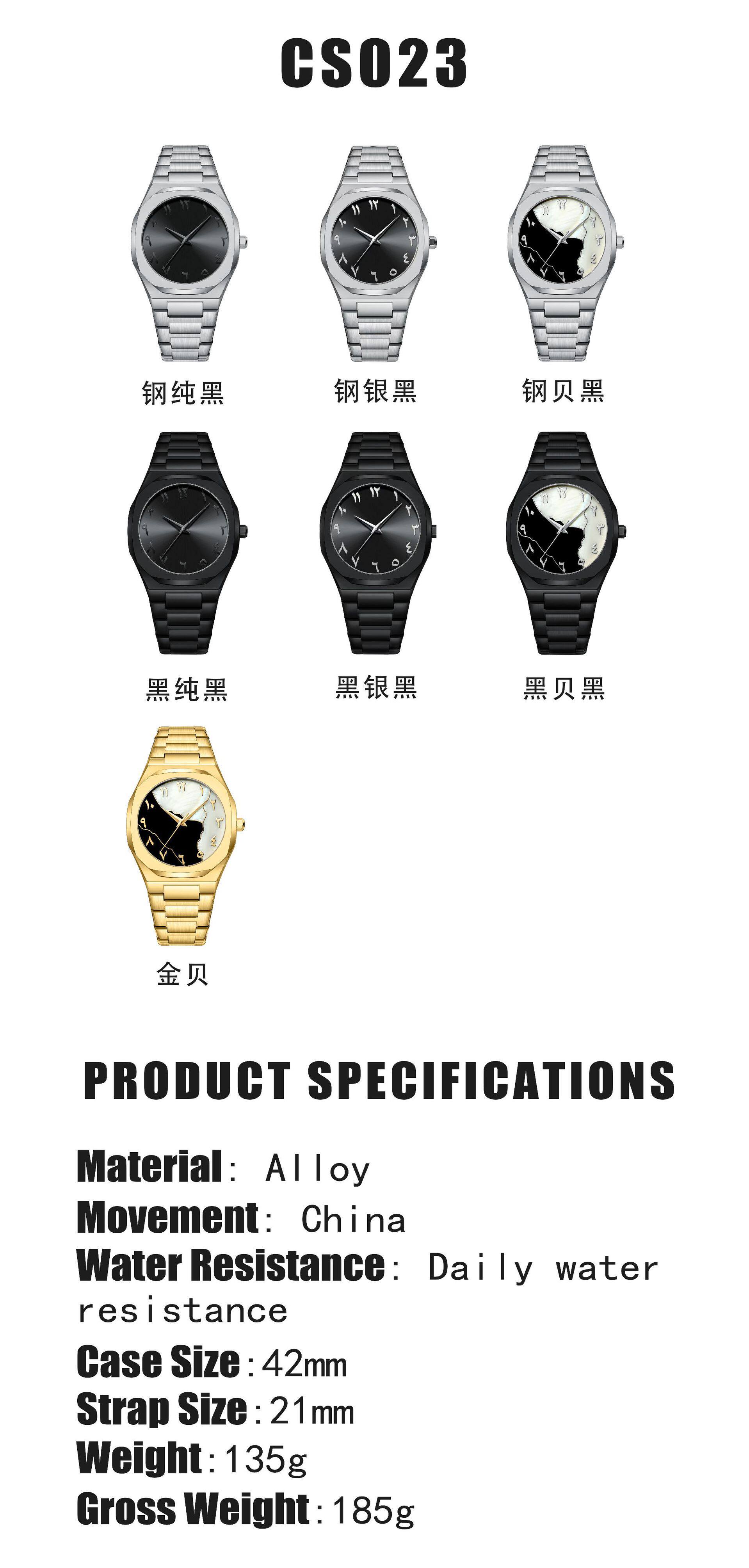 Foreign Trade Cross-Border Wholesale Waterproof Watch Men's Watch Men's Arabic Dial High-End Alloy Quartz Watch Customization