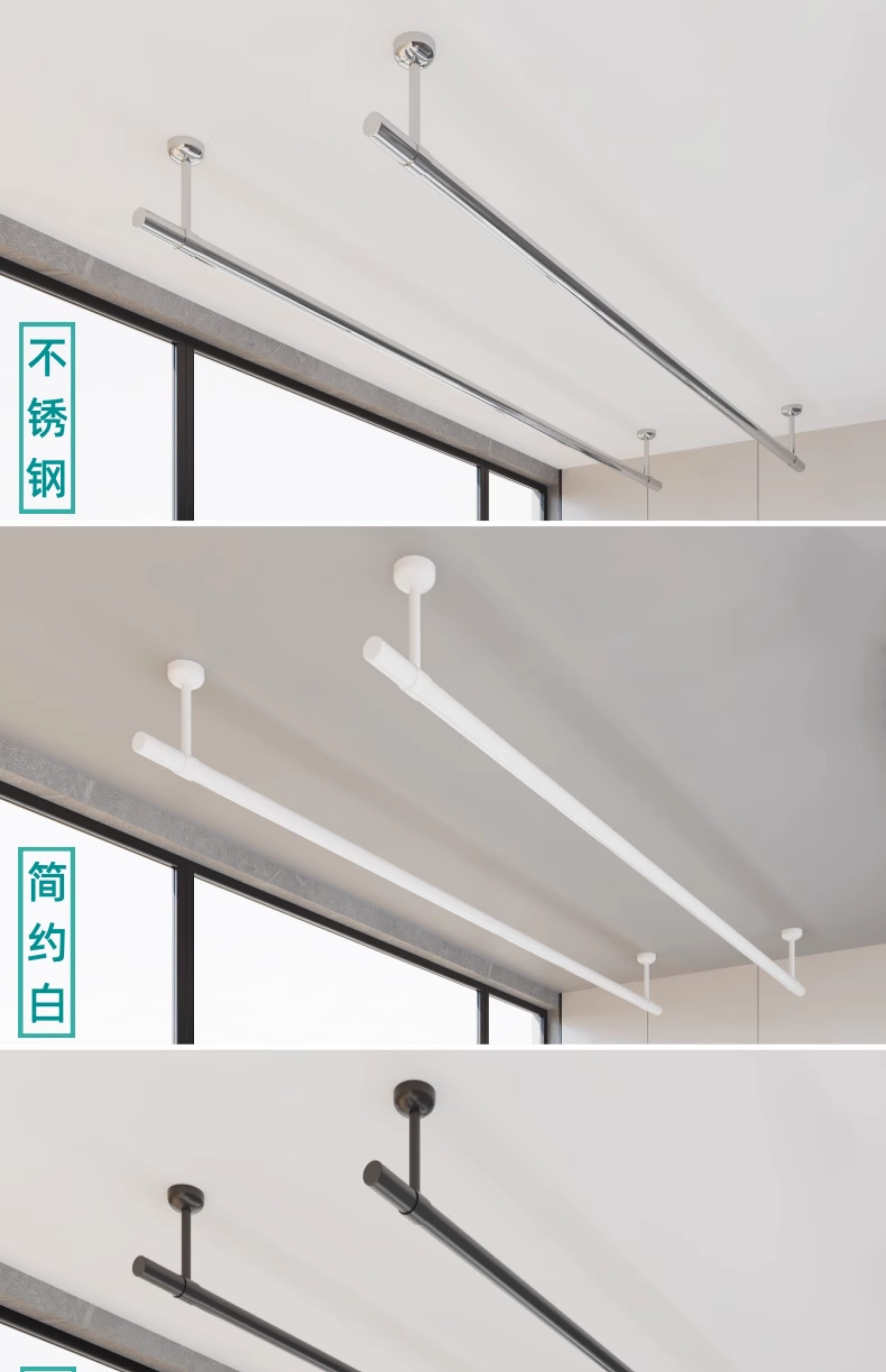 Cross-Border New Style Splicable Clothes Drying Rod Balcony Top-Mounted Hanging Fixed Clothes Drying Rod Black and White Rust Steel Clothes Drying Rod