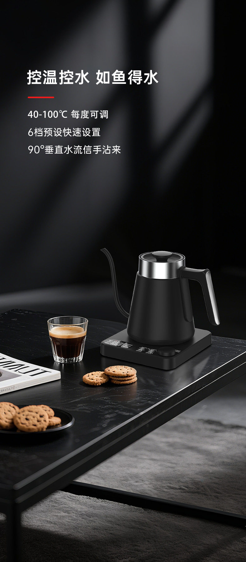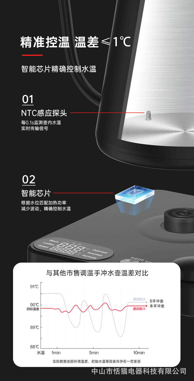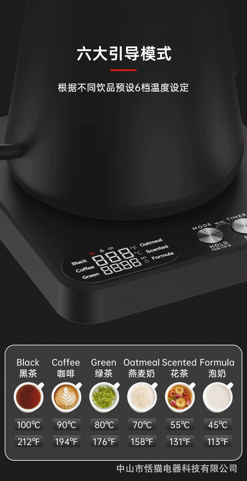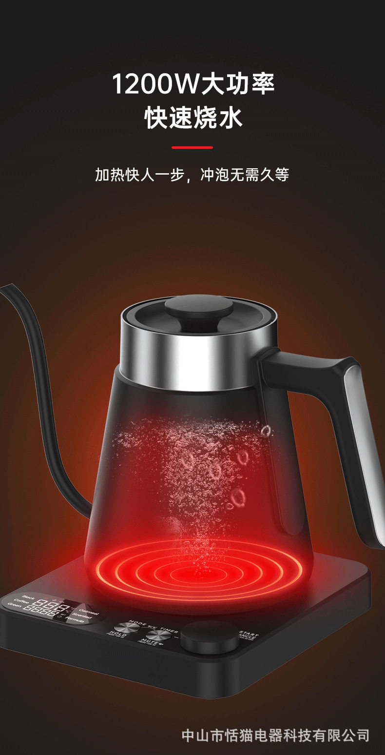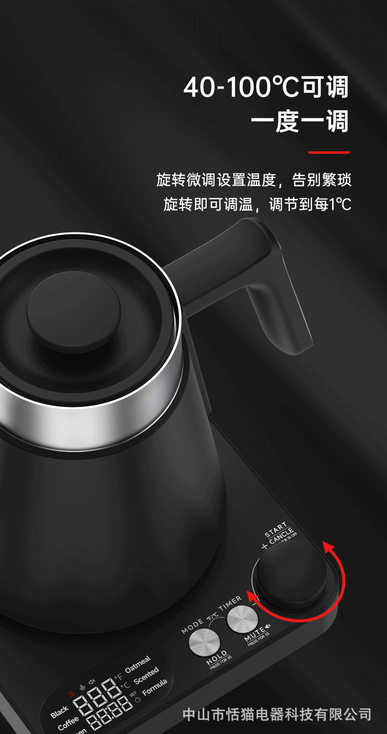Gooseneck Cross-Border Precision Temperature Control Electric Kettle Gooseneck Kettle Hand-Brew Temperature Control Kettle 110V Water Boiling Kettle