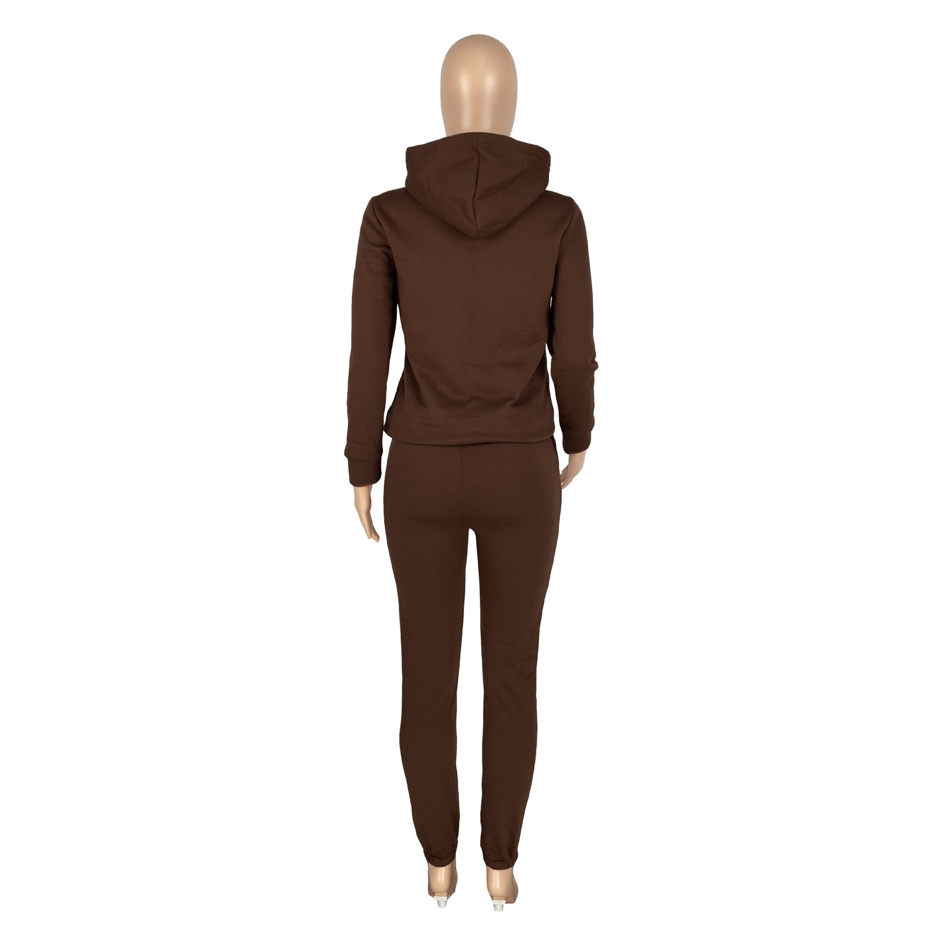 Source Factory Foreign Trade Women's Letter Print Jogger Pants Sweatshirt Fleece Sports Casual Set Versatile for Women