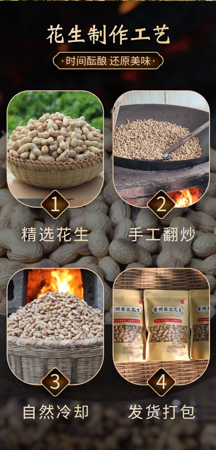 | Packaging specifications | Original firewood fried peanuts 500g,Original firewood fried peanuts 2500g,Original firewood fried peanuts 1000g,Original firewood fried peanuts 250g |