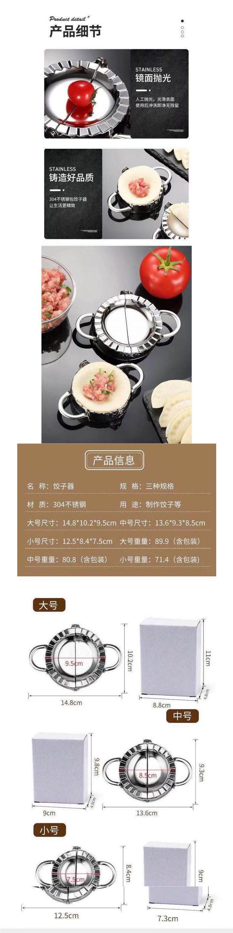 | Specifications | 304 stainless steel dumpling maker [small size thickened],304 stainless steel dumpling maker [medium thickened],304 stainless steel dumpling maker [large size thickened] |