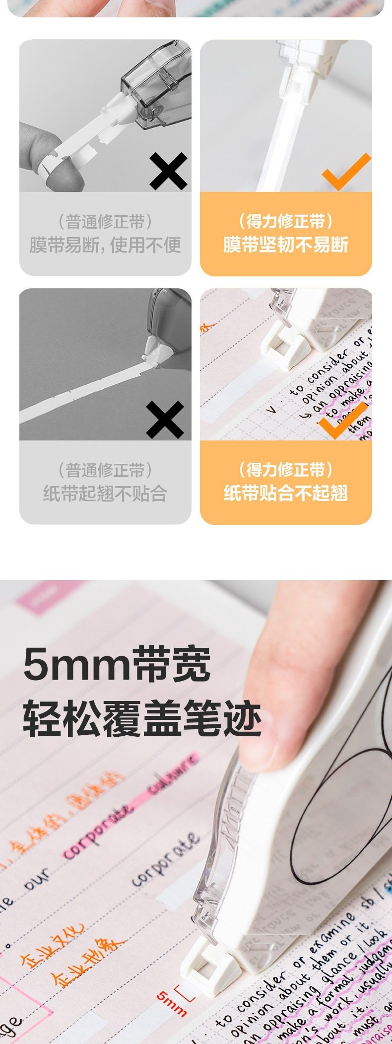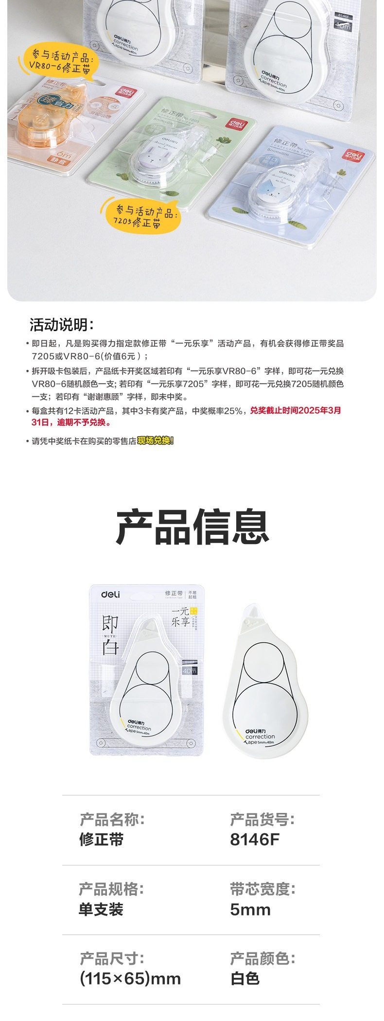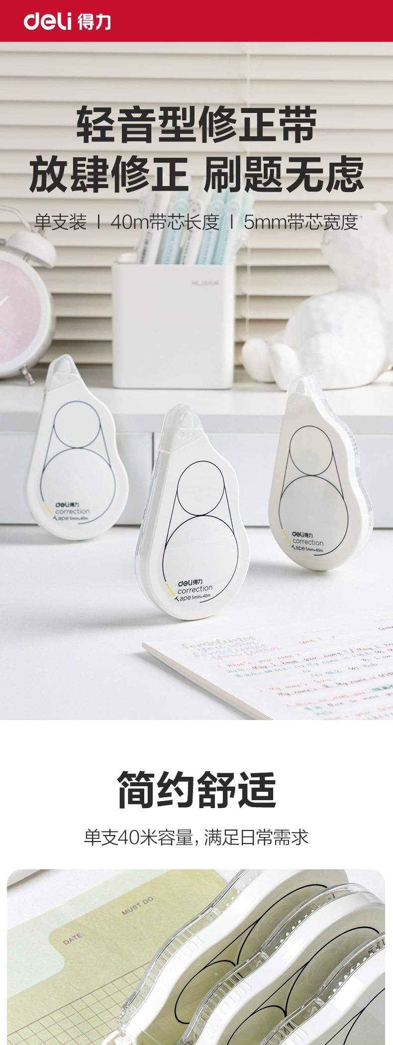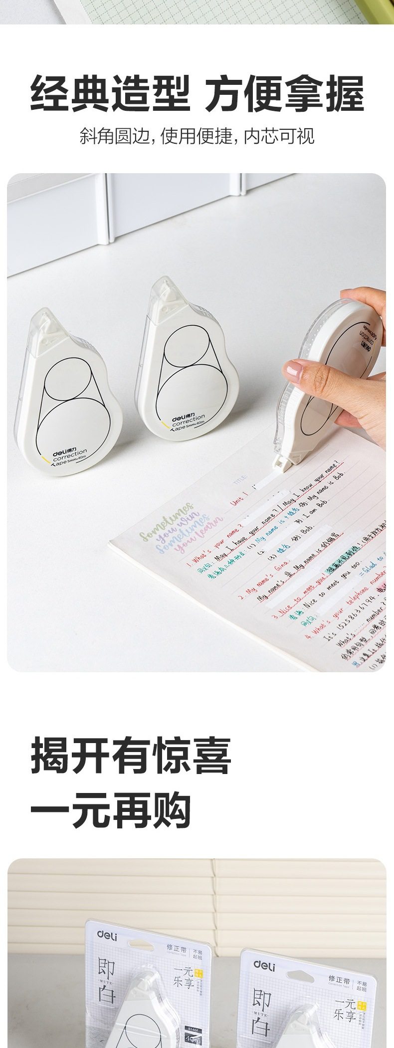 Deli 8146F Correction Tape White Series Correction Tape for Middle School Students Smooth and Quiet Continuous Tape