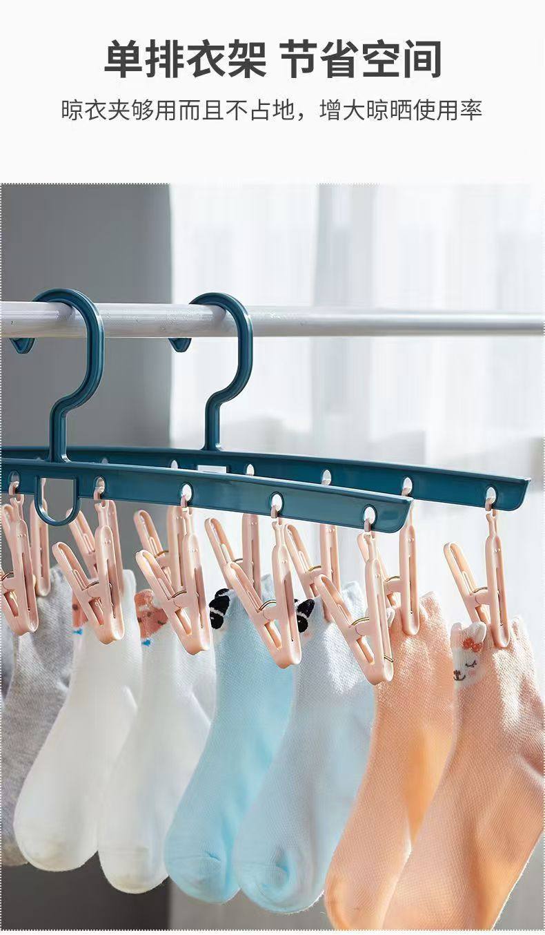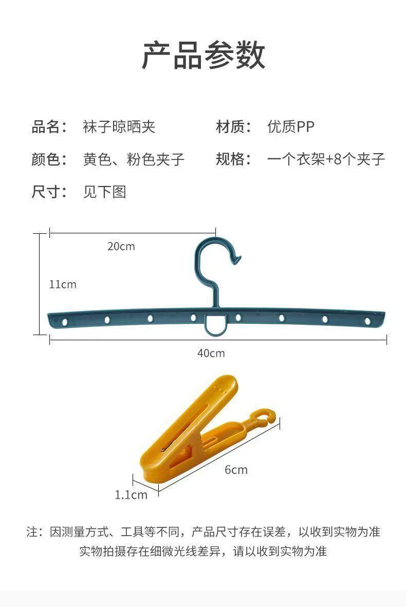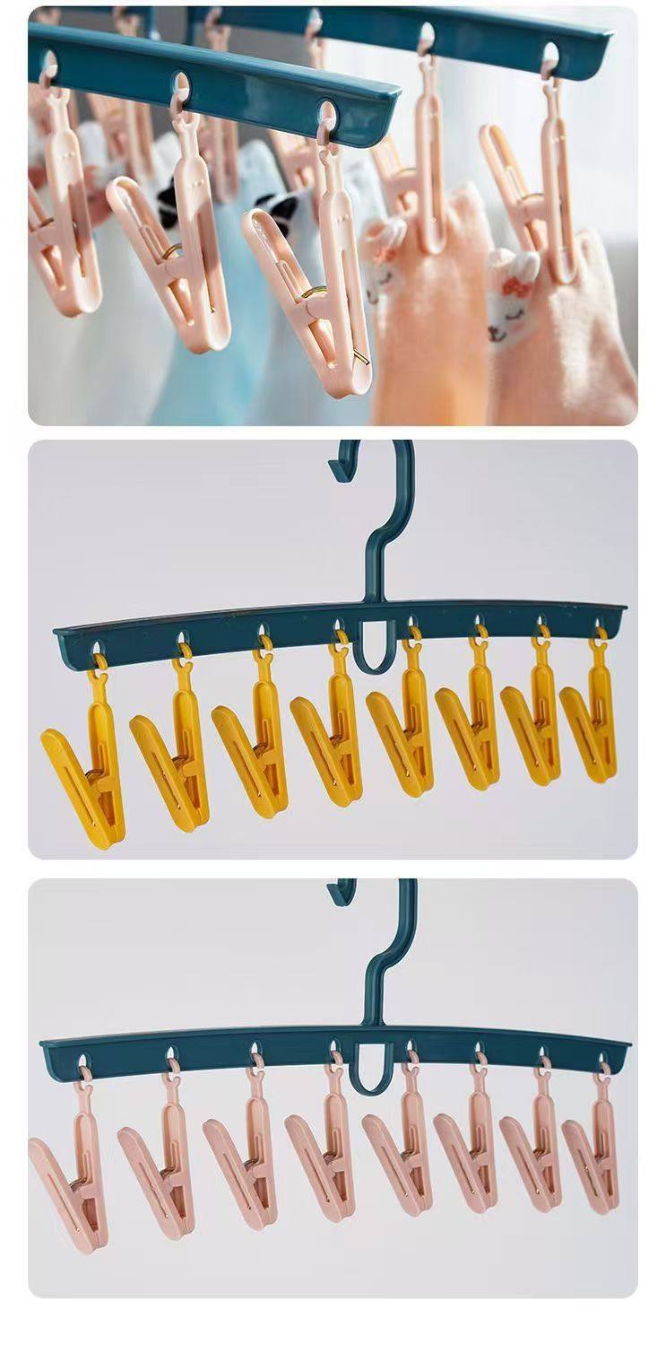 | Attribute | Multifunctional 8-clip clothes drying rack, sock rack, for home plastic windproof clothes hanger, socks, underwear, dormitory hat storage |