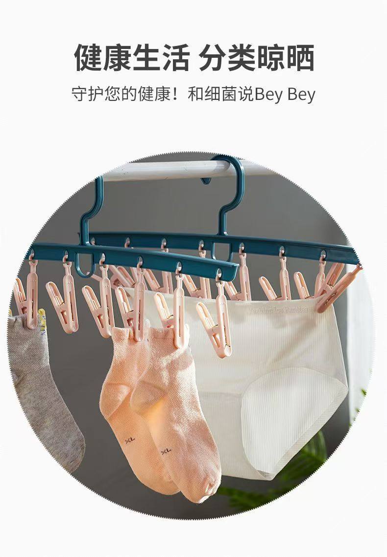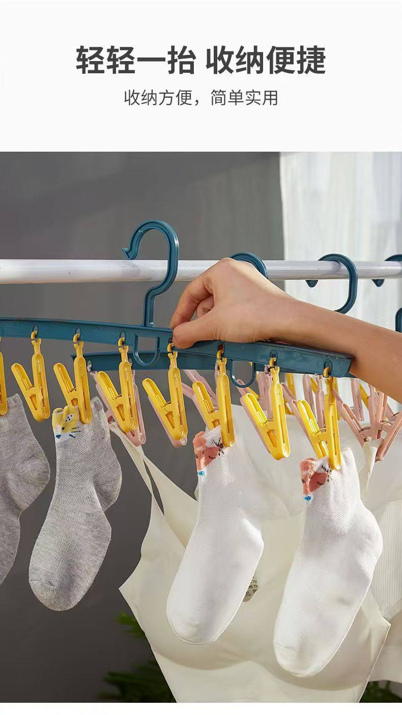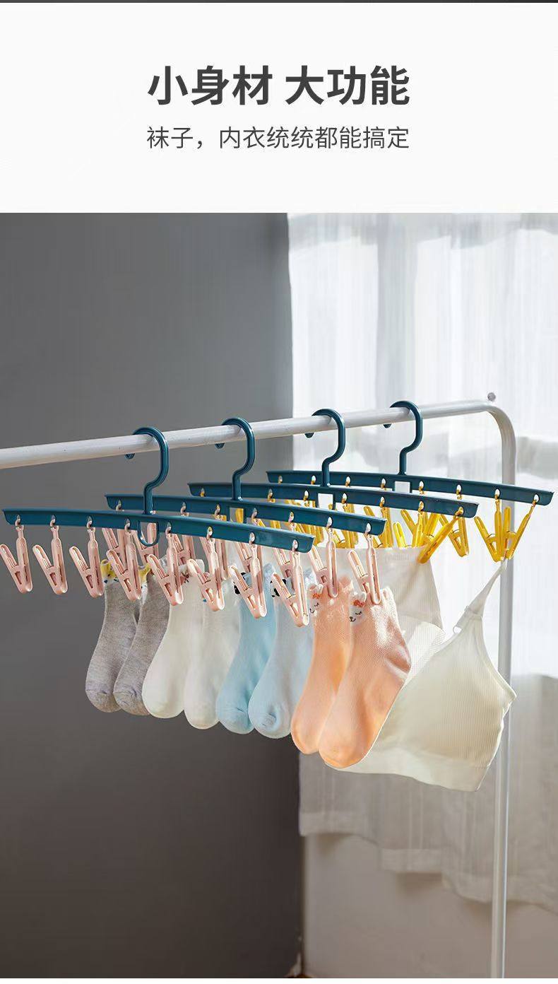 | Attribute | Multifunctional 8-clip clothes drying rack, sock rack, for home plastic windproof clothes hanger, socks, underwear, dormitory hat storage |