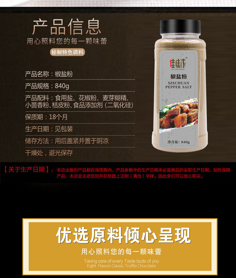Jiaweiniang Pepper Salt Powder Commercial Authentic Pure Pepper Salt Compound Seasoning Household Barbecue Marinated Sprinkler Bottle 840g