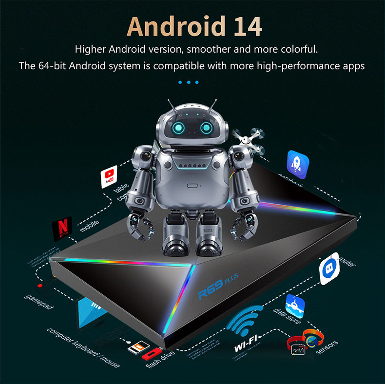 5g Gigabit 8K Wifi6 Android 14 Set-Top Box R69Plus Allchip H728 Tv Set-Top Box Tvbox Customized