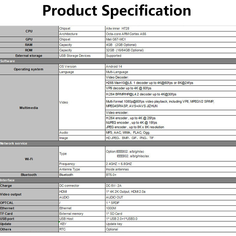 | Package list | Set-top box, power supply, remote control, hd cable, manual |