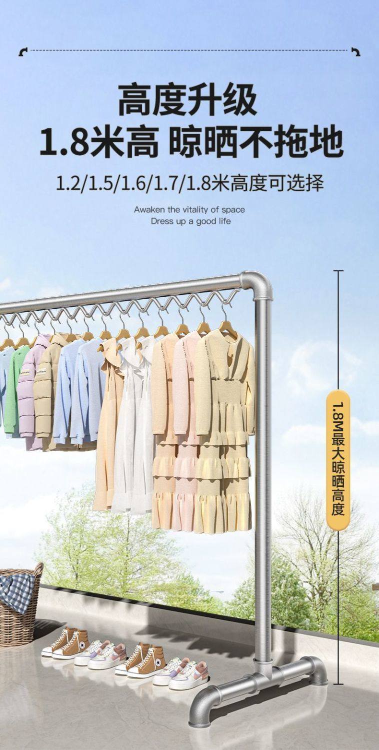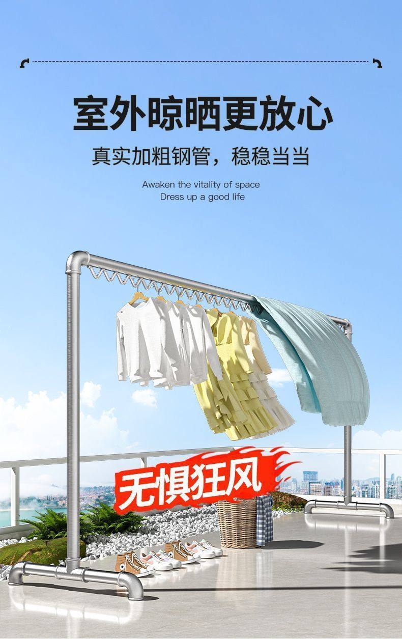 Bold galvanized steel pipe clothes drying rack floor-standing household balcony clothes hanger outdoor double pole simple water pipe clothes drying rack