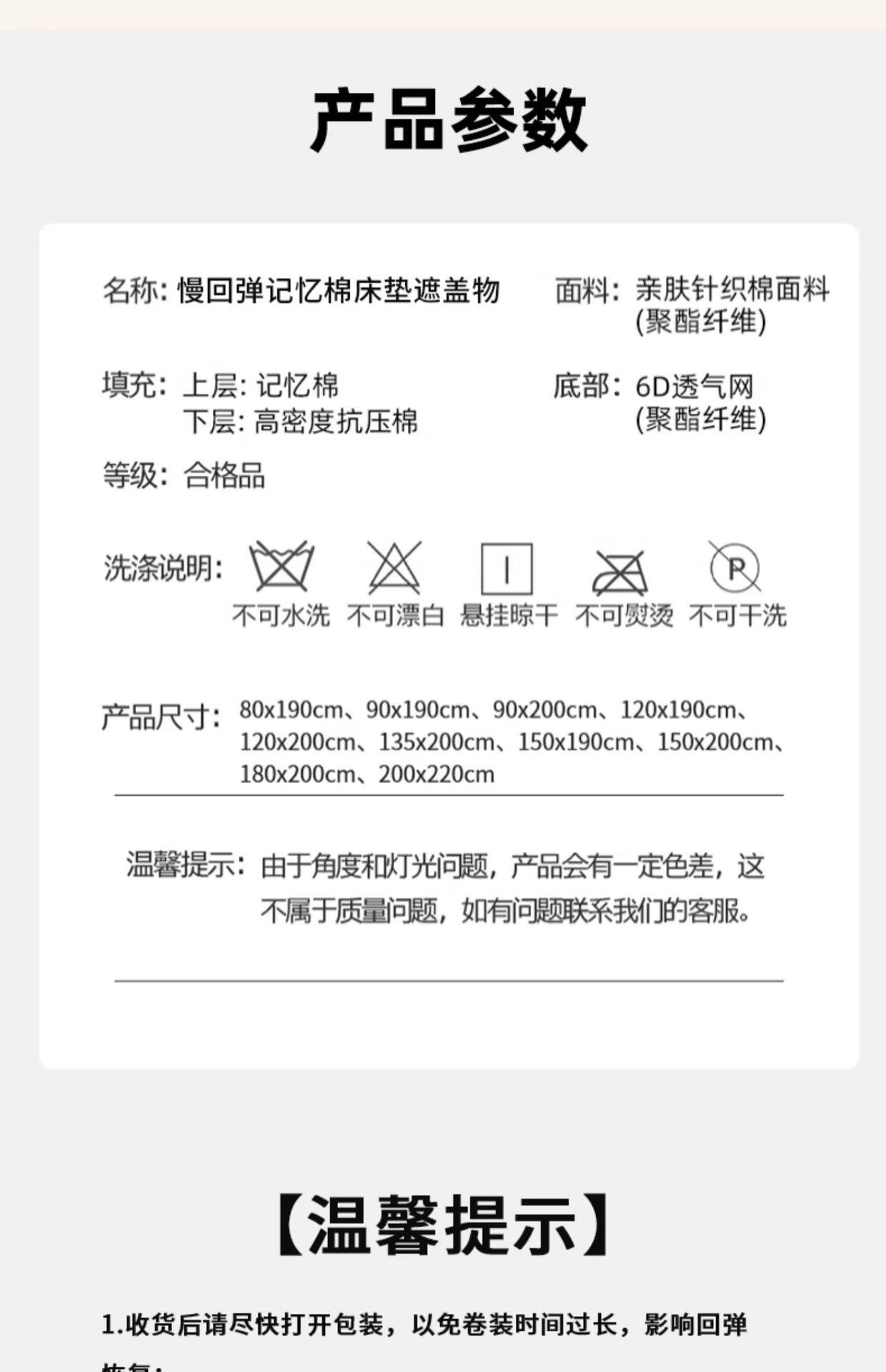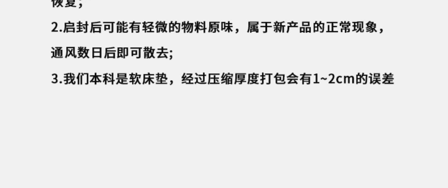 | Size specifications | 80*190cm 0 pressure deep sleep丨authoritative quality inspection丨compensation guarantee for collapse,90*190cm 0 pressure deep sleep丨authoritative quality inspection丨compensation guarantee for collapse,90*200cm [0 pressure deep sleep | authoritative quality inspection | collapse compensation],100*200cm [0 pressure deep sleep | authoritative quality inspection | collapse compensation],120*190cm 0 pressure deep sleep丨authoritative quality inspection丨compensation guarantee for collapse,120*200cm 0 pressure deep sleep丨authoritative quality inspection丨compensation guarantee for collapse,150*190cm 0 pressure deep sleep丨authoritative quality inspection丨compensation guarantee for collapse,150*200cm [0 pressure deep sleep | authoritative quality inspection | collapse compensation],180*200cm 0 pressure deep sleep丨authoritative quality inspection丨compensation for collapse,200*220cm 0 pressure deep sleep丨authoritative quality inspection丨compensation for collapse |