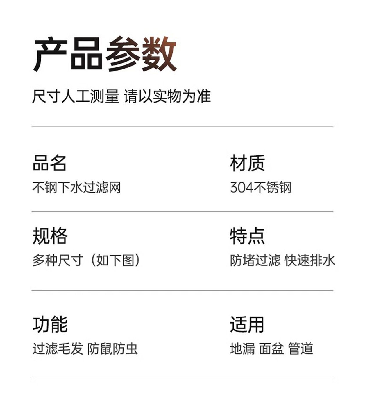 | Specifications | [universal for basins] new style, short style that does not dirty your hands (easy to clean),[universal for basins] new portable and non-dirty long style (easy to clean),[universal for floor drains] new style, short style that does not dirty your hands (easy to clean),[universal for floor drains] new style portable and non-dirty long style (easy to clean),2 pieces [universal for basins] new style, portable, non-dirty, short style,Pack of 2 [universal for basins] new style portable, non-dirty hand length style,2 pack [universal for floor drain] new portable style, dirty hands, short style,Pack of 2 [universal for floor drains] new style portable and non-dirty long style,[universal for basins] 304 stainless steel filter short style (easy to clean),[universal for basins] 304 stainless steel filter long style (easy to clean),[universal for floor drains] 304 stainless steel filter short style (easy to clean),[universal for floor drains] 304 stainless steel filter long style (easy to clean),Pack of 2 [universal for basins] 304 stainless steel filter short style,Pack of 2 [universal for basins] 304 stainless steel filter long style,Pack of 2 [universal for floor drain] 304 stainless steel filter short style,Pack of 2 [universal for floor drains] 304 stainless steel filter long style |