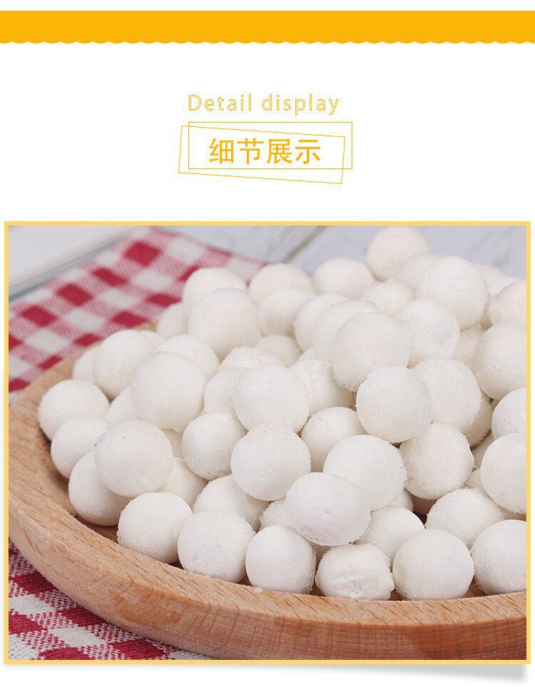 | Packaging specifications | Anjing xiaoyuanzi 2kg*1 pack,Anjing xiaoyuanzi 2kg*5 packs (full box),Yangmei ice rice balls 1kg*1 pack trial pack,Qingtuan small balls 500g*1 pack,Glutinous rice balls 500g*1 pack,Colorful taro balls 500g*1 pack,Colored taro balls 1kg*1 pack,Colorful large taro balls 1kg*1 pack,Original taro paste 1kg*1 pack,Colorful taro balls 500g*30 packs (full box),Glutinous rice balls 500g*30 packs, whole box affordable,Colorful small taro balls 1kg*15 packs (full box affordable),Colorful large taro balls 1kg*15 packs (full box affordable),Original taro paste 1kg 15 packs (full box affordable),Qingtuan small meatballs 500g*30 packs (more affordable),Yangmei ice rice balls 1kg*15 packs (full box is a good deal) |