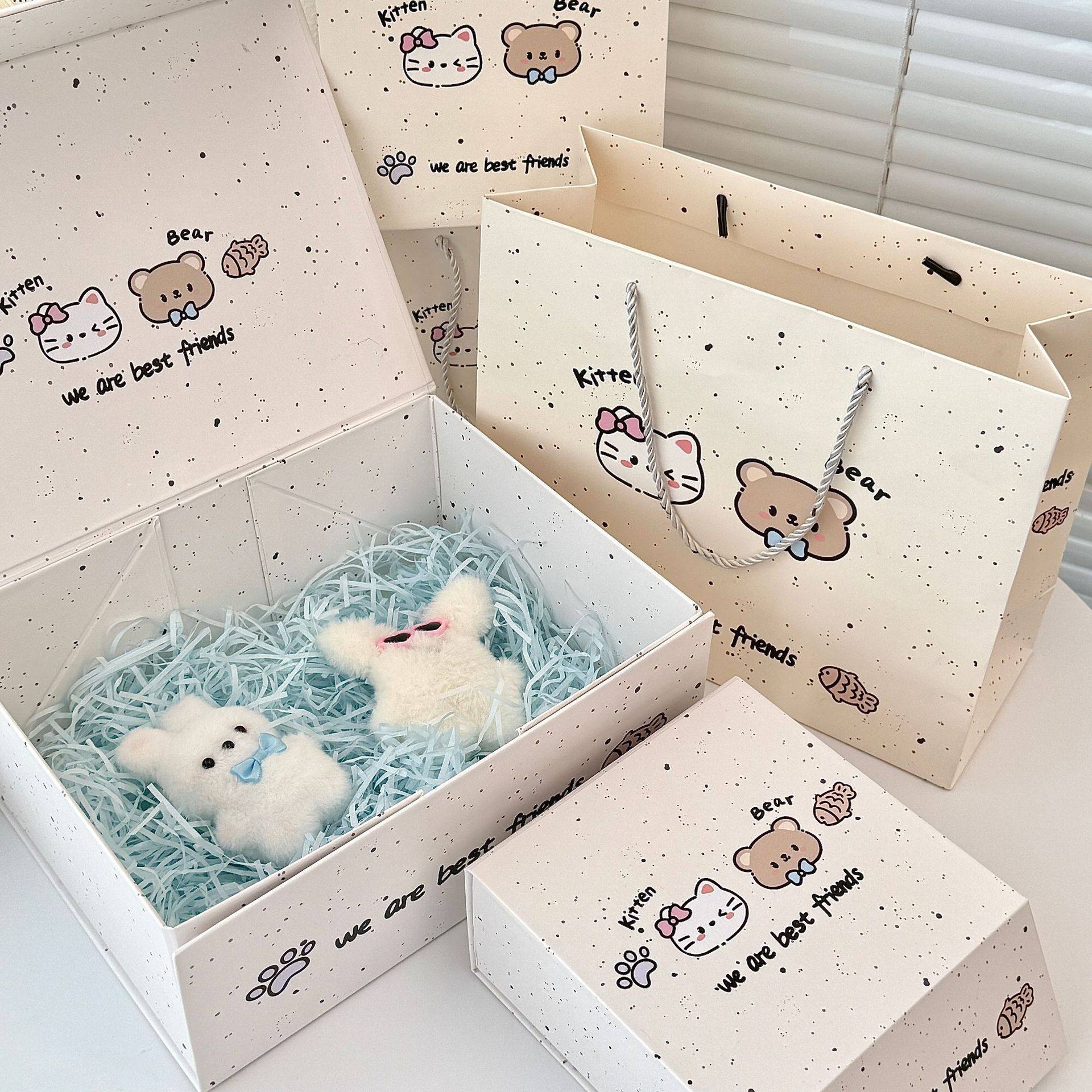 | Specifications and models | Magnetic box splash ink cute pet [large size]; only large size magnetic box,Magnetic box splash ink cute pet [small size]; only small size magnetic box,Raffia-light blue [10g/pack]; only blue raffia,Raffia - milky white [10g/pack]; only white raffia,Handbag splash-ink cute pet [large size]; only large gift bag,Tote bag splash ink cute pet small size; only small size gift bag |