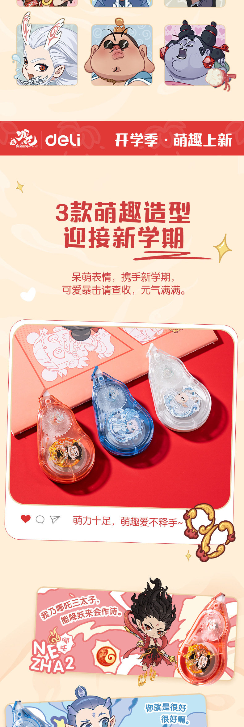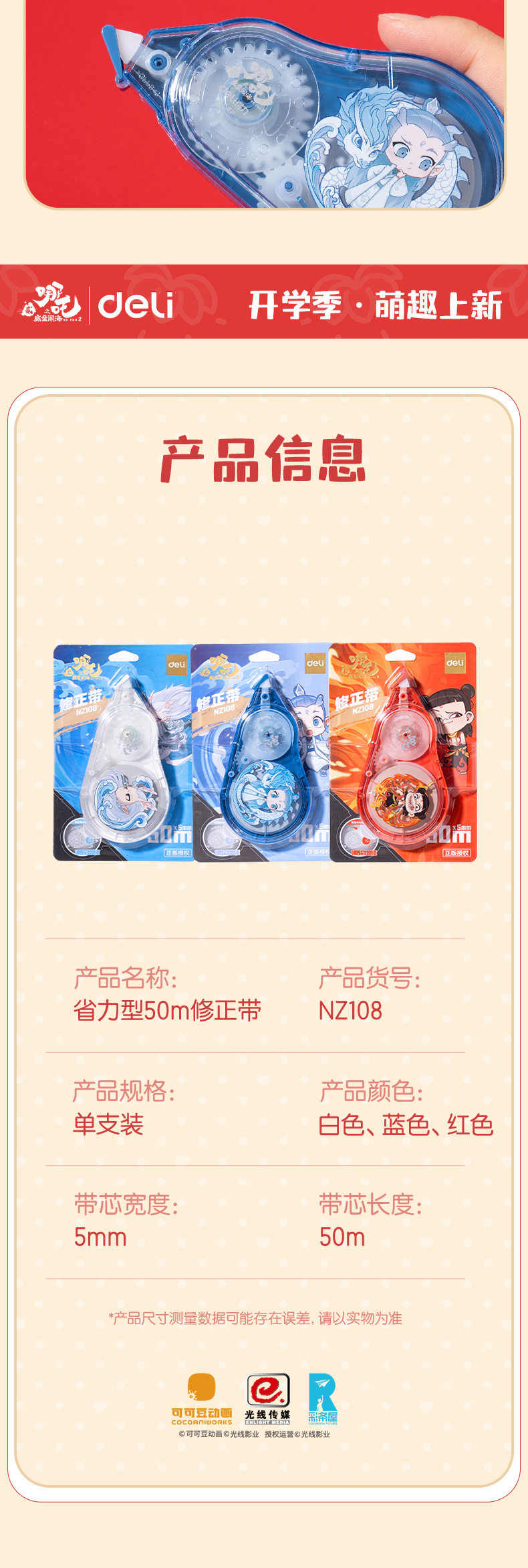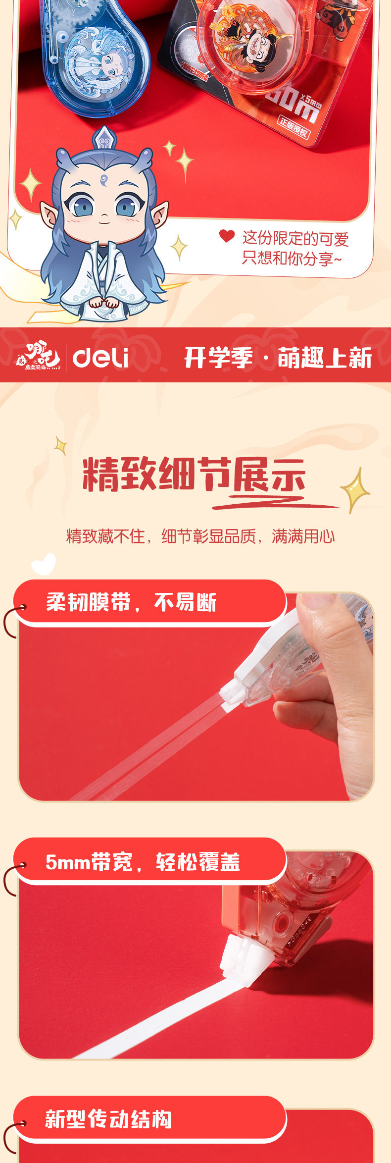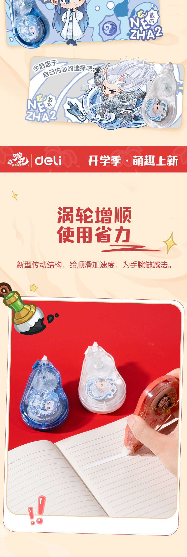 Deli Nezha Series Correction Tape Large Capacity Student Correction Tape Labor-Saving Cartoon Fashion Correction Tape