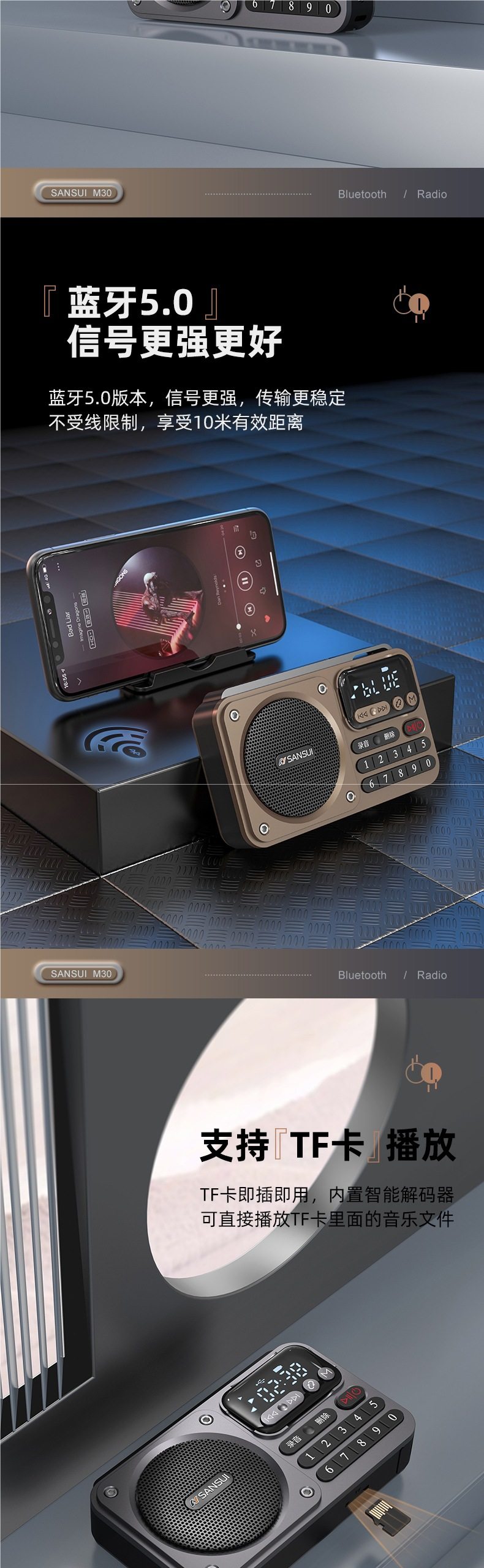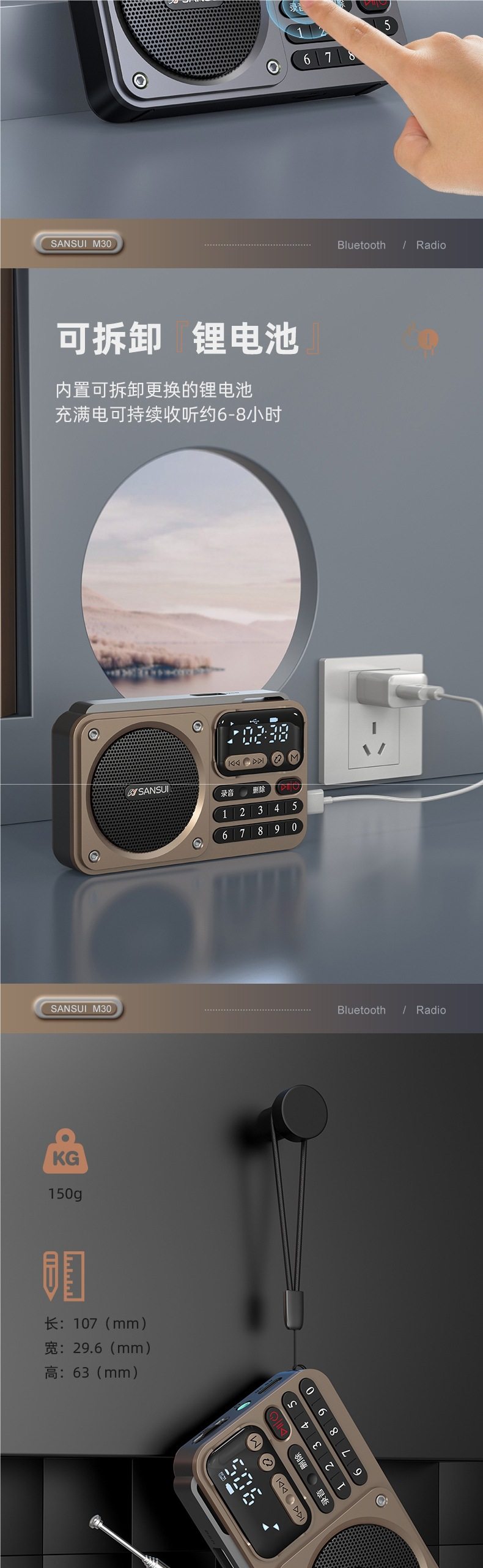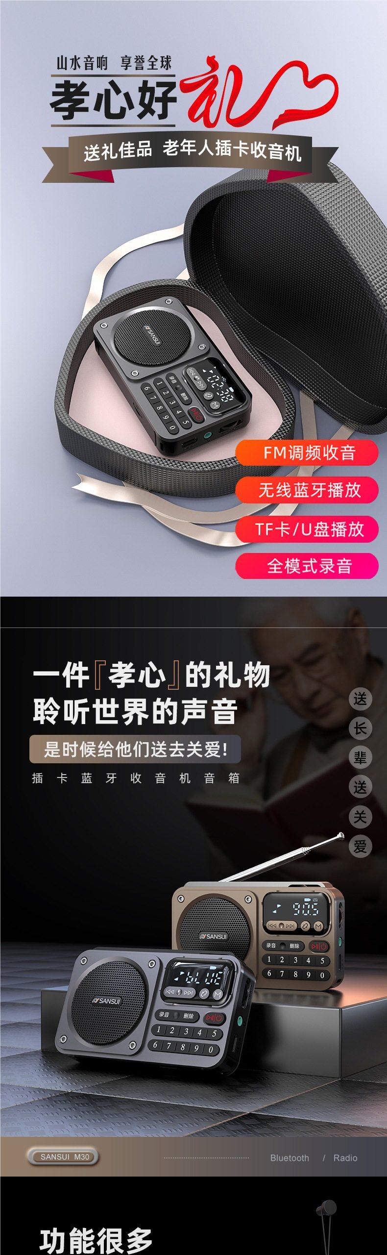 Shanshui Radio Elderly Portable Card Speaker Bluetooth Audio Mini Walkman Player Rechargeable