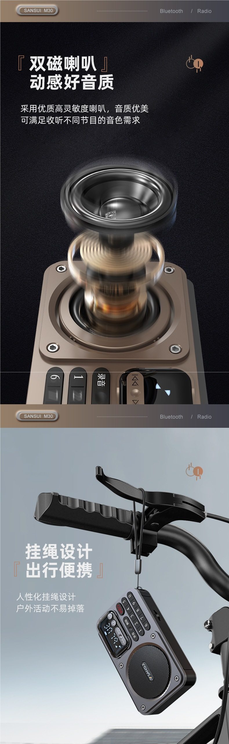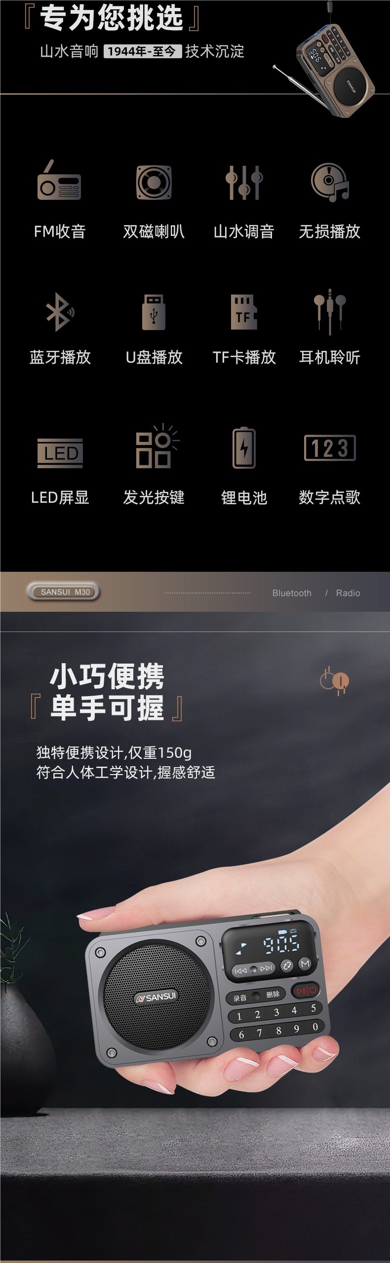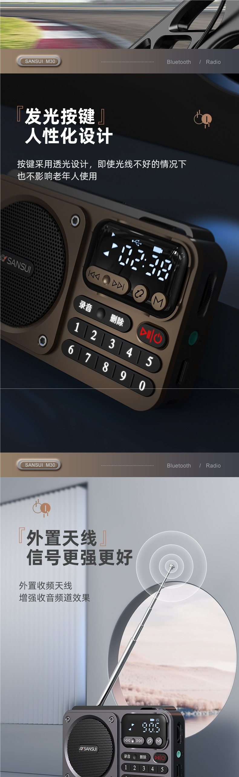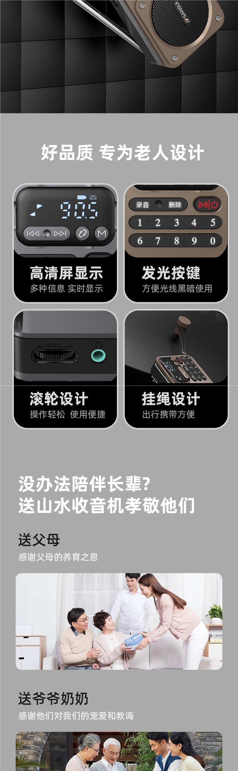 Shanshui Radio Elderly Portable Card Speaker Bluetooth Audio Mini Walkman Player Rechargeable
