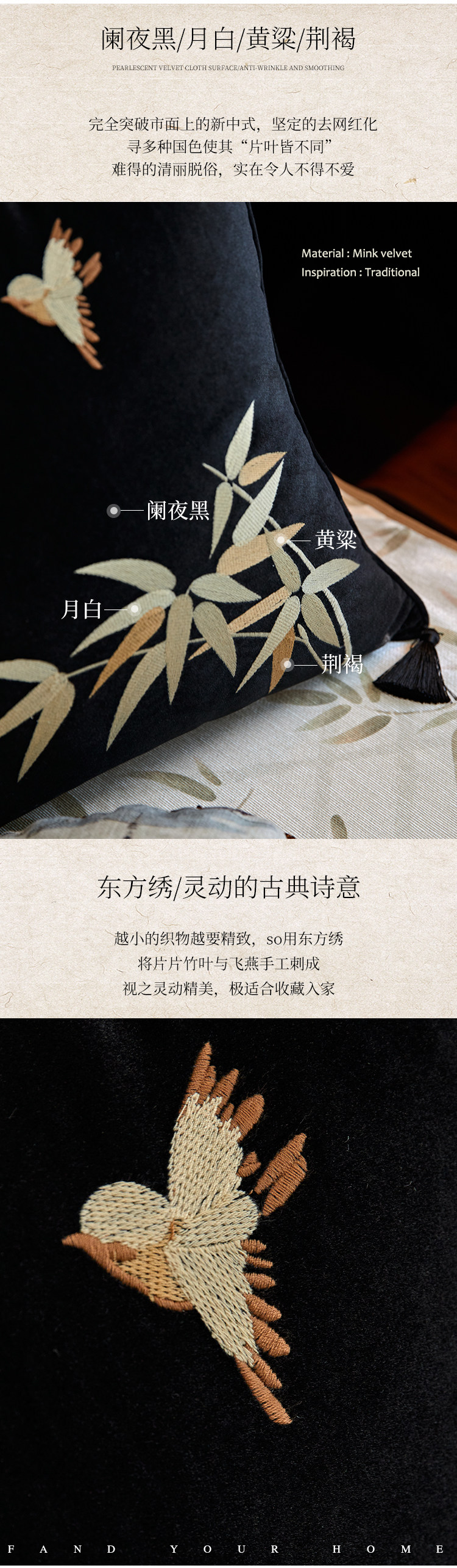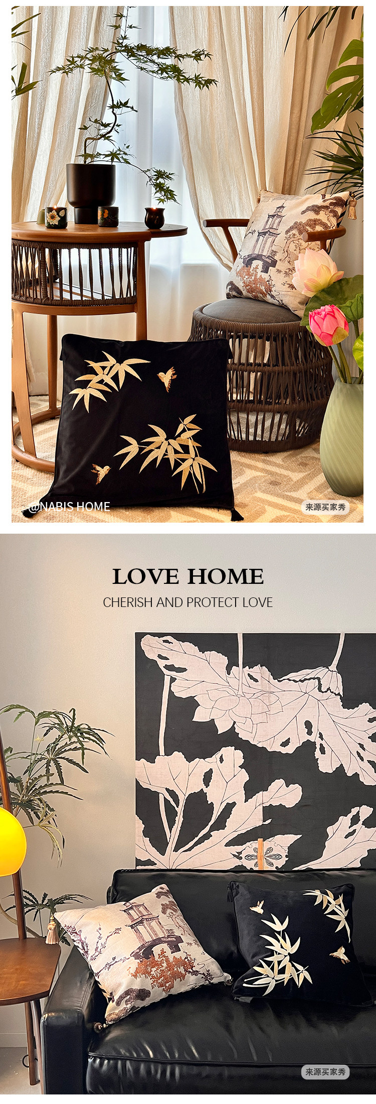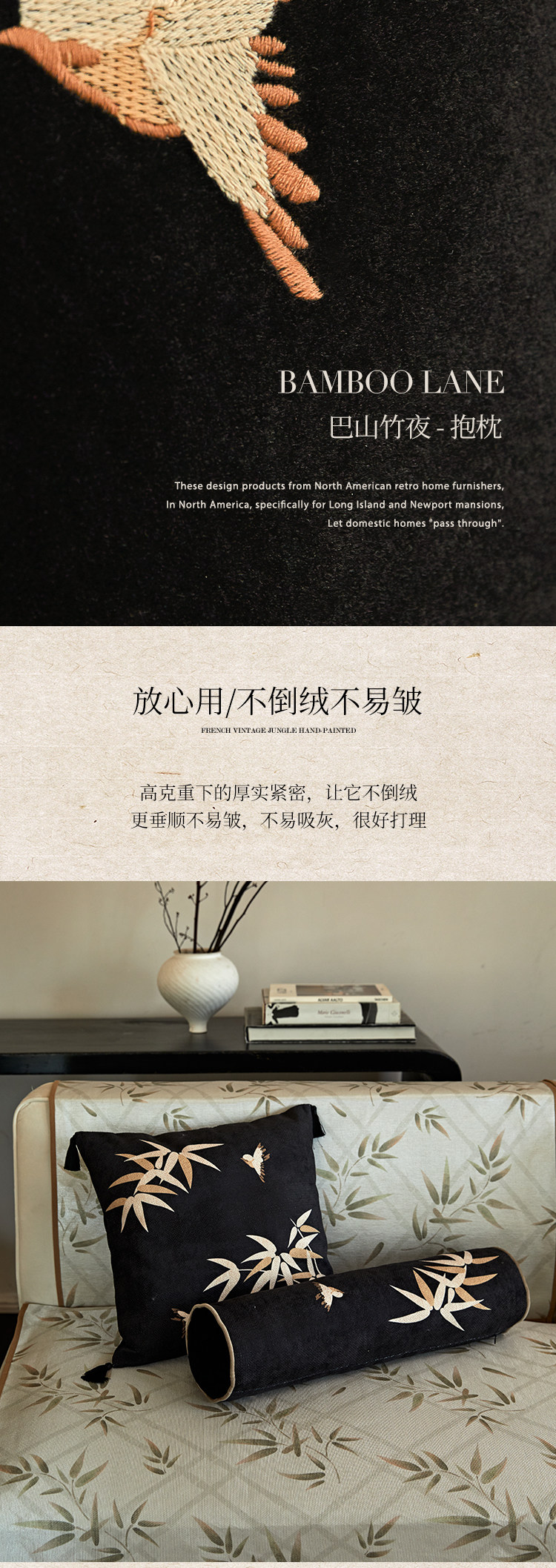 ✅ Crayon School | Bashan Bamboo Night | Embroidered Throw Pillow, French-Style Chinese-Style Cushion, Atmospheric Cushion, Sofa Lumbar Pillow