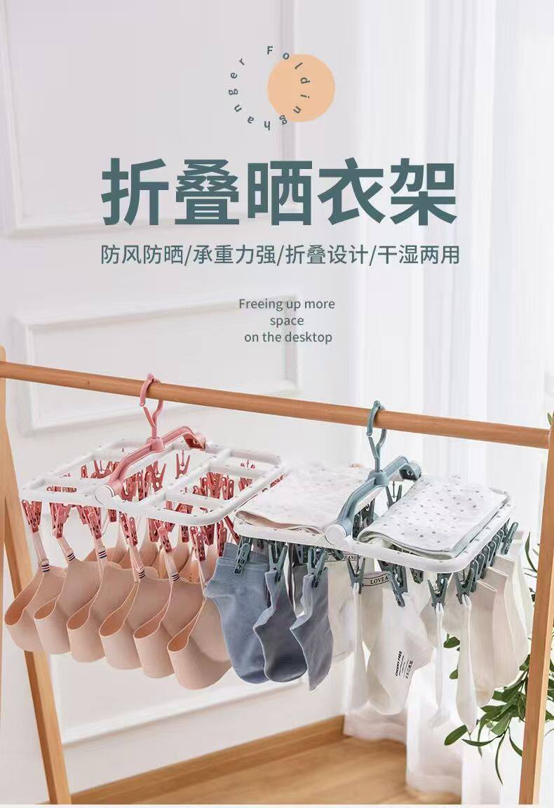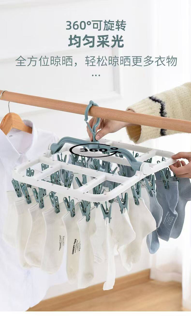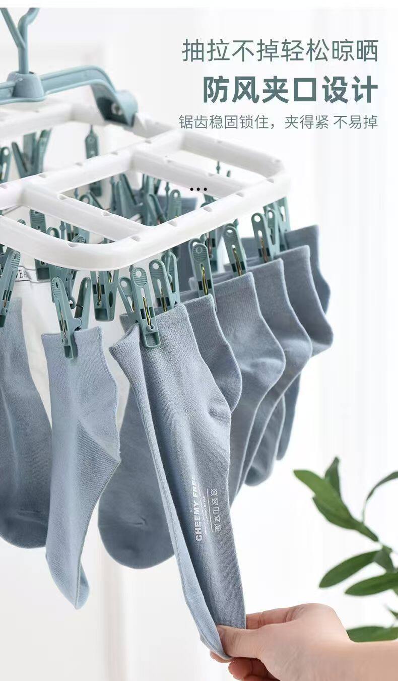 Windproof Drying Rack with 40 Clips, Plastic Square Clothes Drying Rack, Sock Drying Tool, Sock Clips, Double-Layer Clothes Rack