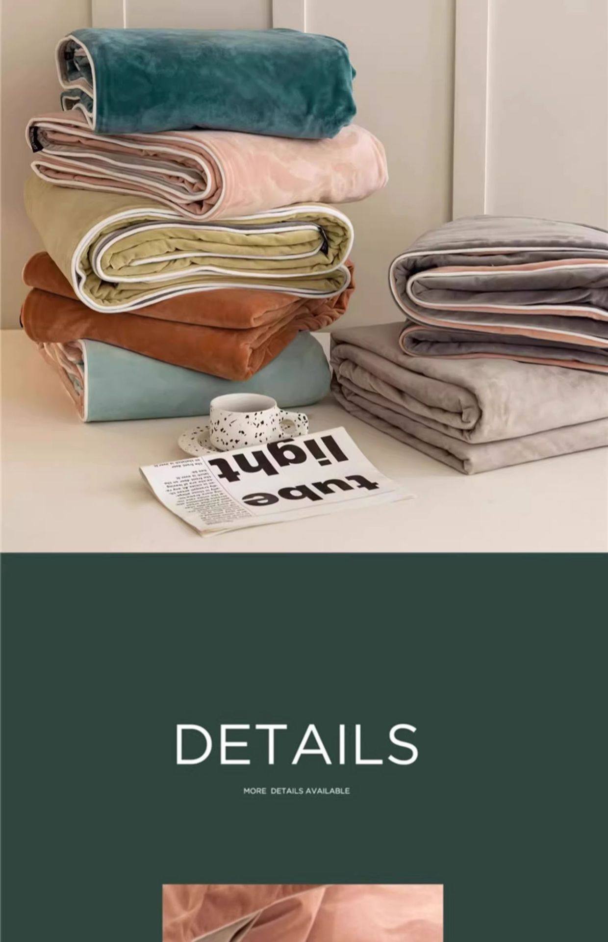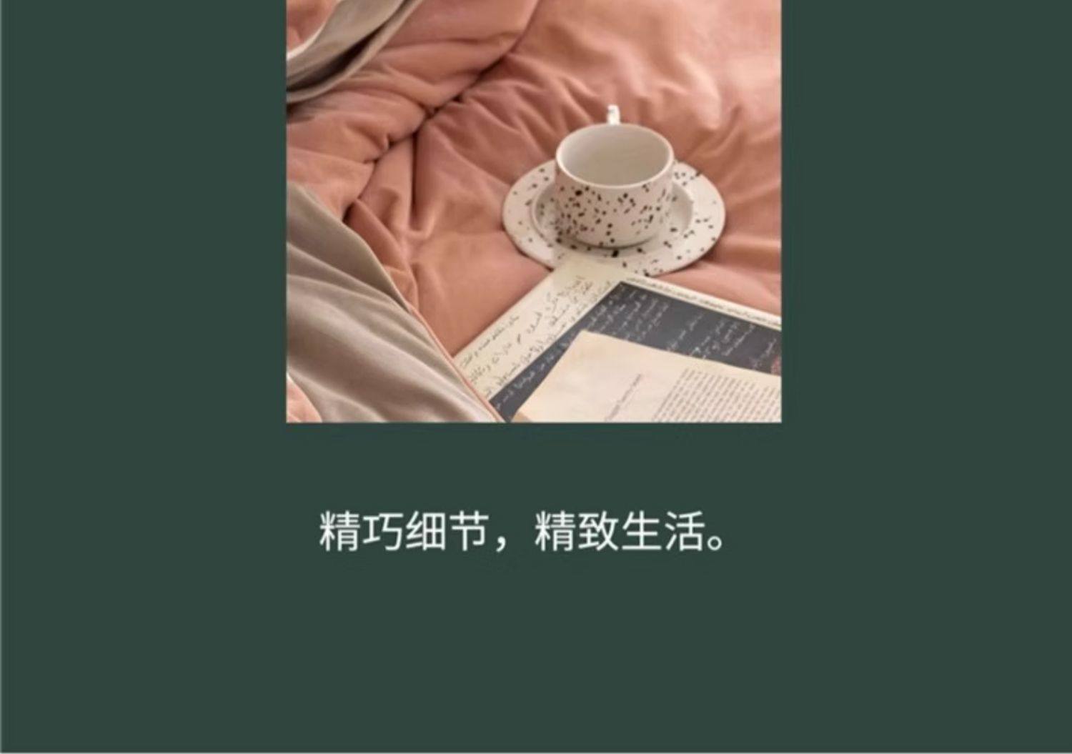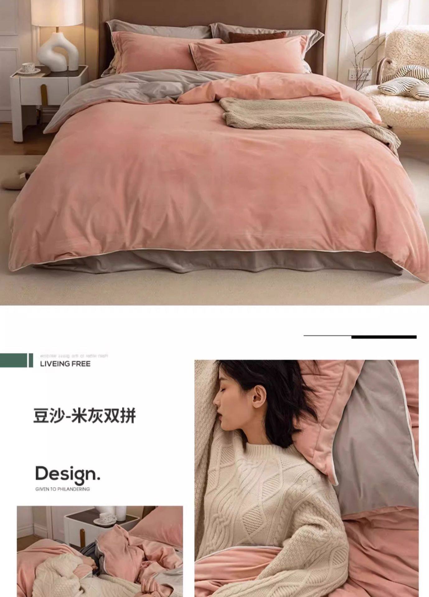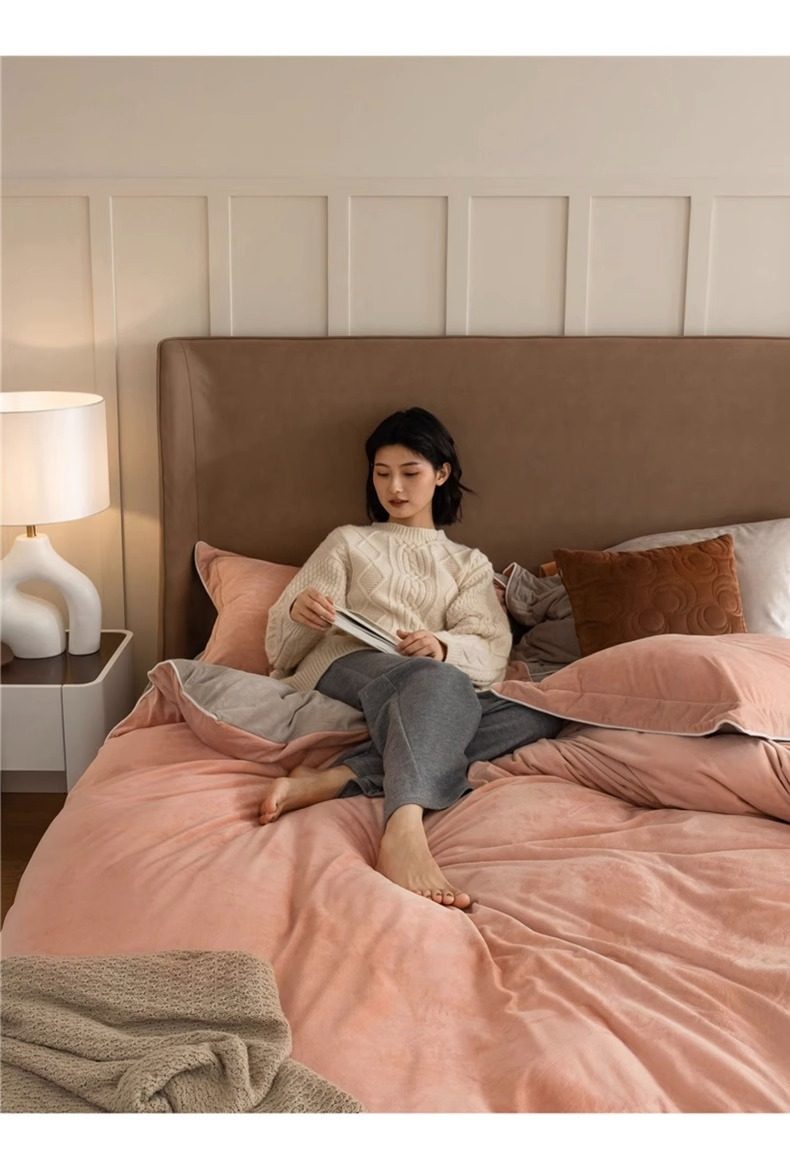 | Size specifications | 150x200cm single quilt cover [double-sided thickened milk velvet constant temperature sleep],180x220cm single quilt cover [double-sided thickened milk velvet constant temperature sleep],200x230cm single quilt cover [double-sided thickened milk velvet constant temperature sleep],220x240cm single quilt cover [double-sided thickened milk velvet constant temperature sleep],1.2m three-piece bed set [sheets 160x230 quilt cover 150x200],1.5m four-piece bed set [sheets 245x250 quilt cover 200x230],1.8m four-piece bed set [sheets 245x250 quilt cover 200x230],2.0m four-piece bed set [sheet 245x270 quilt cover 220x240],1.5m four-piece bed set [fitted sheet 150x200 quilt cover 200x230],1.8m four-piece bed set [fitted sheet 180x200 quilt cover 200x230] |