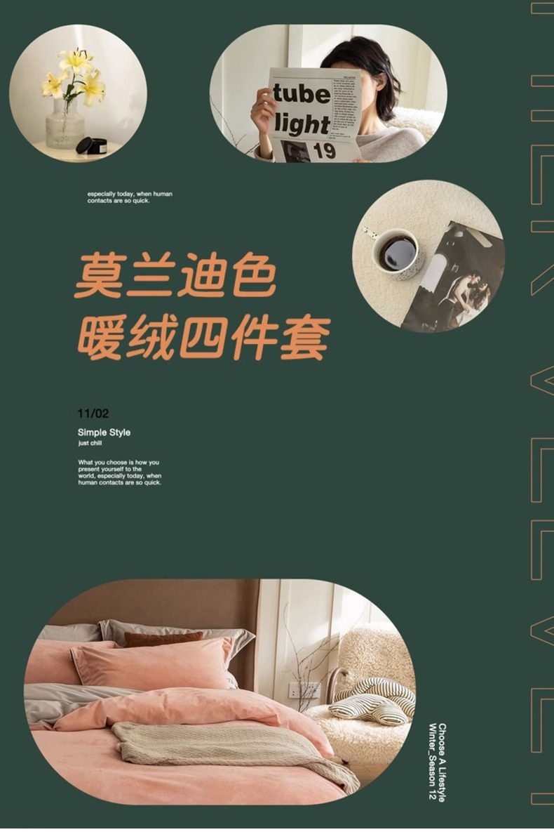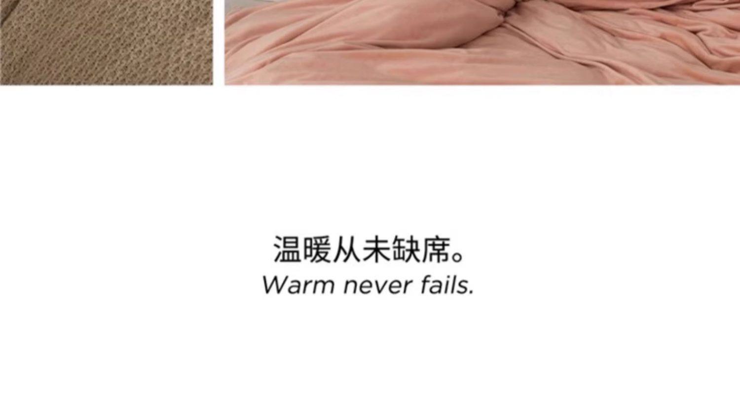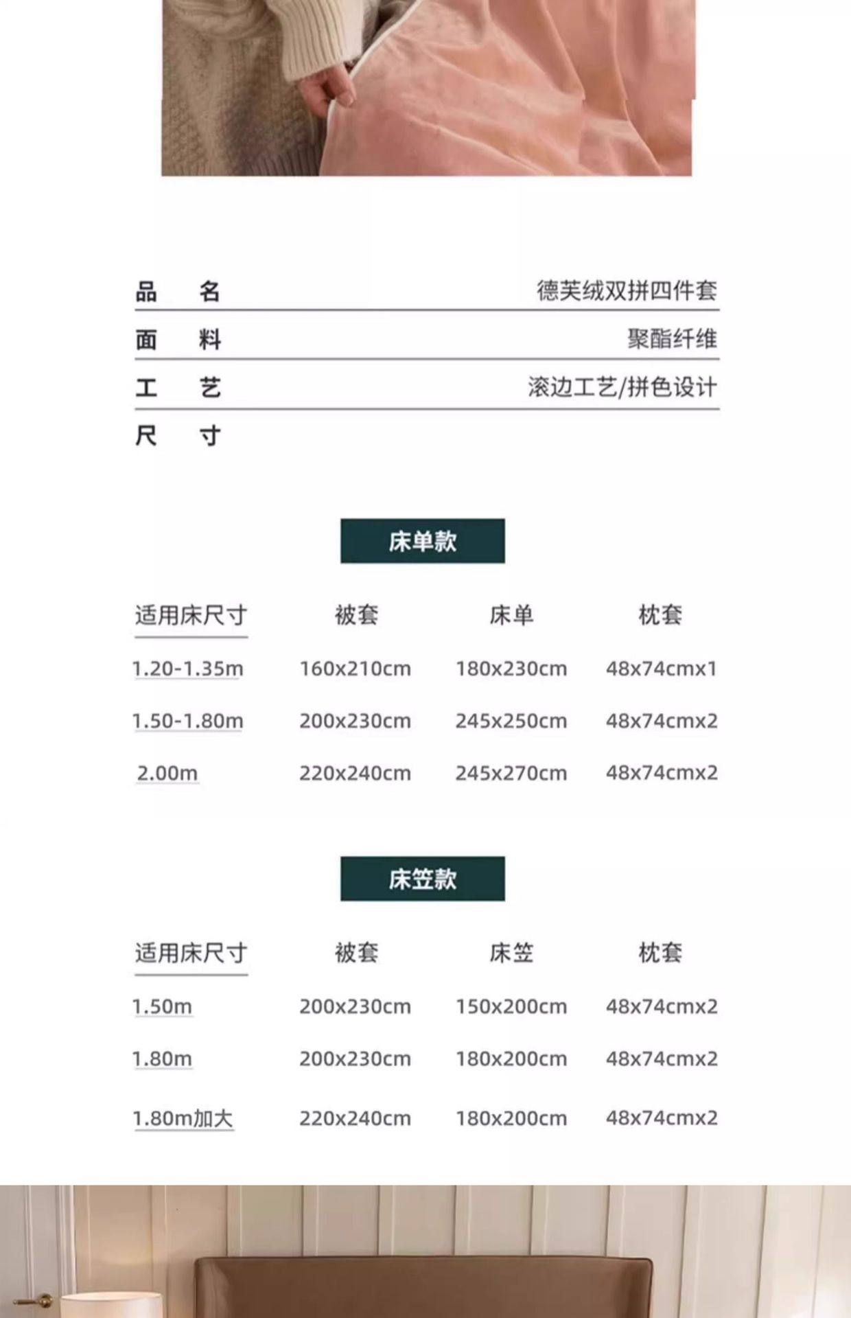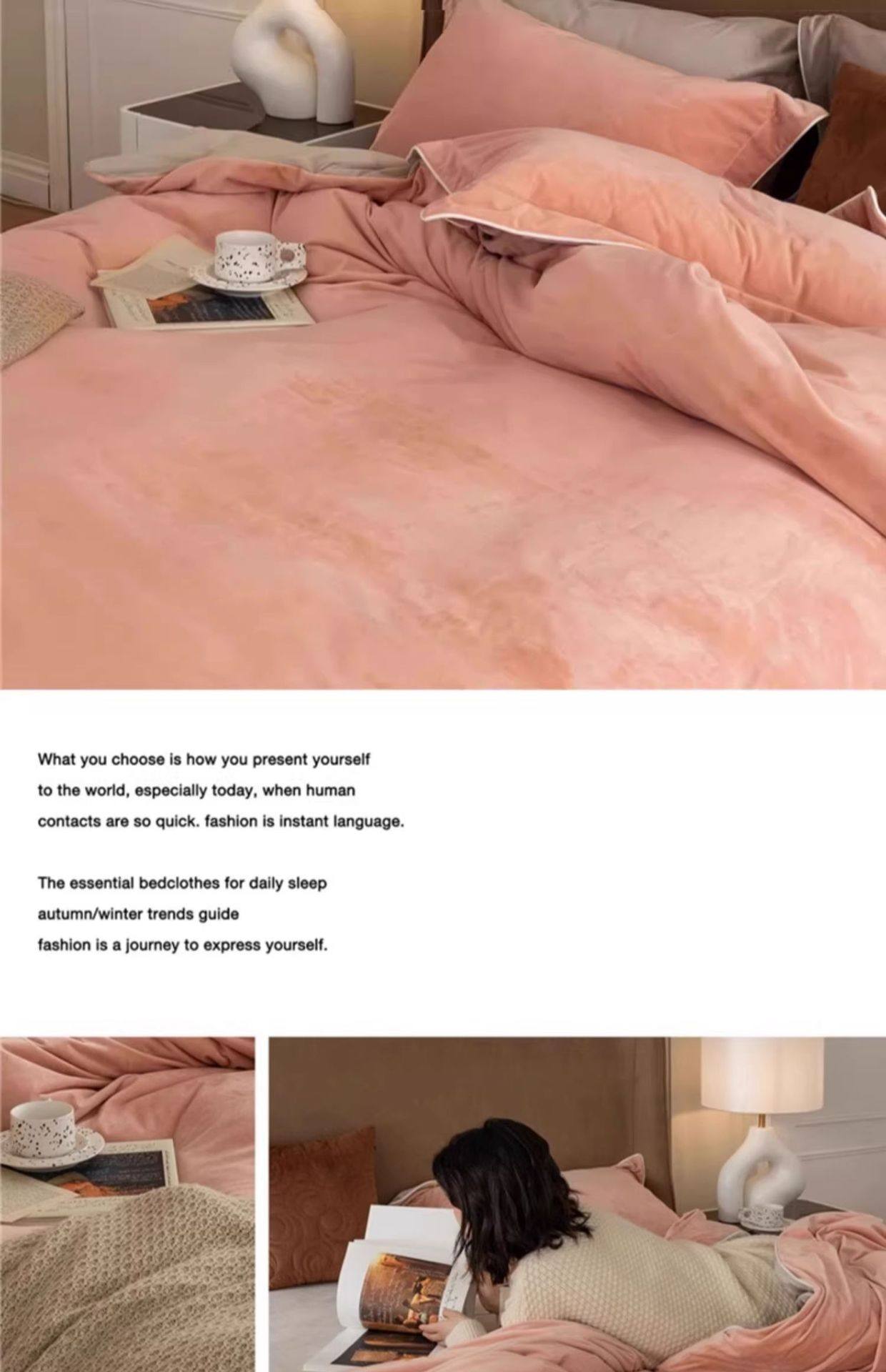 | Size specifications | 150x200cm single quilt cover [double-sided thickened milk velvet constant temperature sleep],180x220cm single quilt cover [double-sided thickened milk velvet constant temperature sleep],200x230cm single quilt cover [double-sided thickened milk velvet constant temperature sleep],220x240cm single quilt cover [double-sided thickened milk velvet constant temperature sleep],1.2m three-piece bed set [sheets 160x230 quilt cover 150x200],1.5m four-piece bed set [sheets 245x250 quilt cover 200x230],1.8m four-piece bed set [sheets 245x250 quilt cover 200x230],2.0m four-piece bed set [sheet 245x270 quilt cover 220x240],1.5m four-piece bed set [fitted sheet 150x200 quilt cover 200x230],1.8m four-piece bed set [fitted sheet 180x200 quilt cover 200x230] |