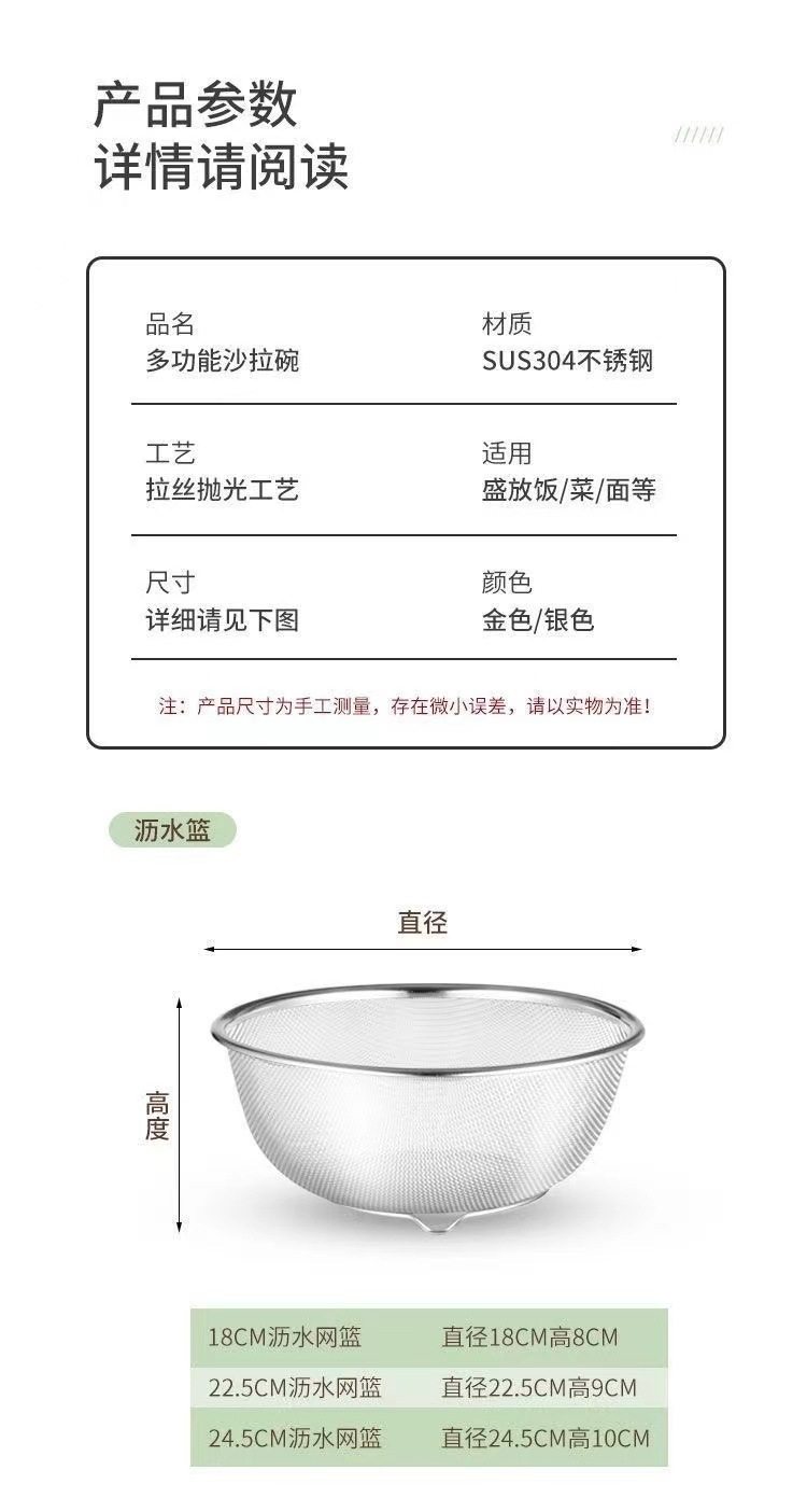 Drain Basket 316 Stainless Steel Vegetable Washing Basin Rice Washing Sieve Rice Washing Basin Kitchen Fruit Washing Basin Water Filter Rice Washing Artifact