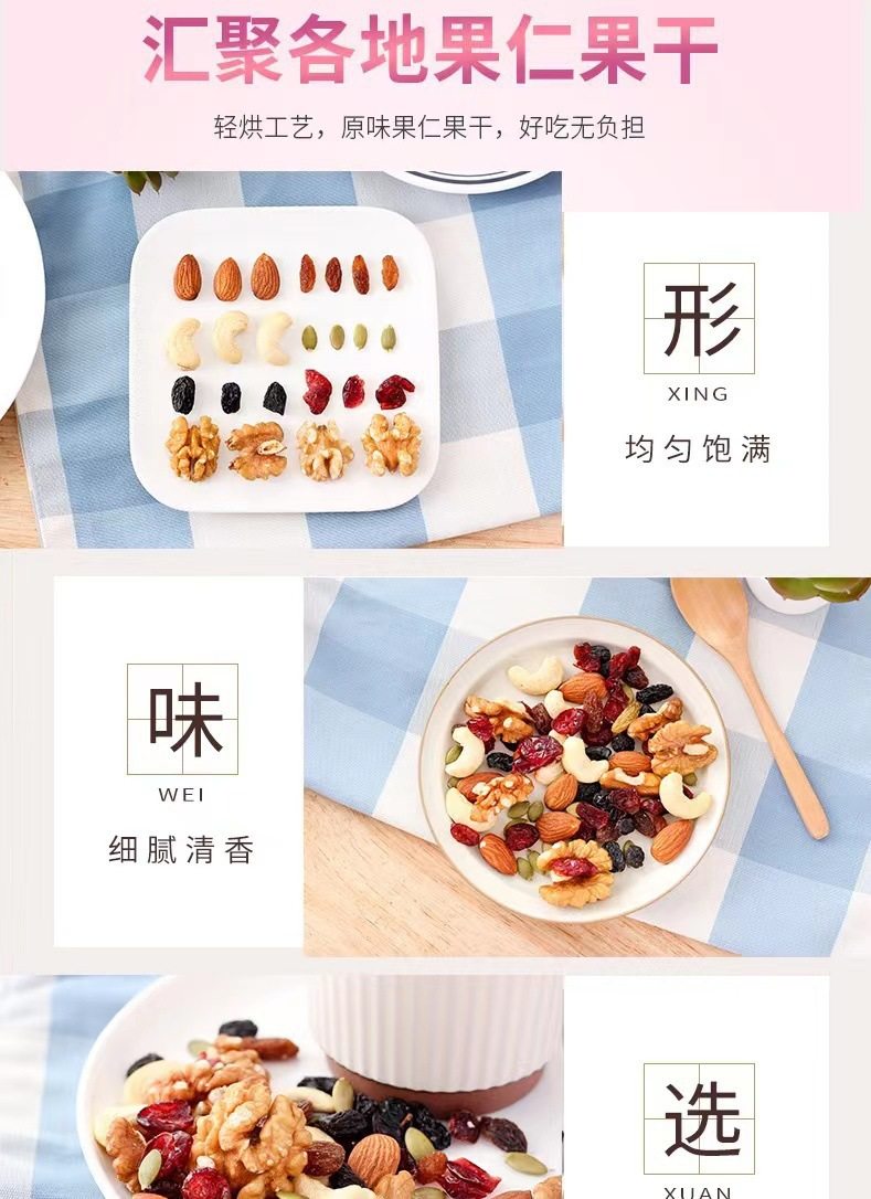 | Taste | [selected] 1 can of daily nuts with a total weight of 250g,[selected] 2 cans of daily nuts with a total weight of 500g (recommended),[selected] 4 cans of daily nuts with a total weight of 1000g (super cost-effective),[selected] daily nuts half a pound bag,[selected] daily nuts 0.5kg bags (recommended),[selected] daily nuts 1.0kg bags (super cost-effective),[selected] net weight 250g × 2 bags [ 0.5kg ] |