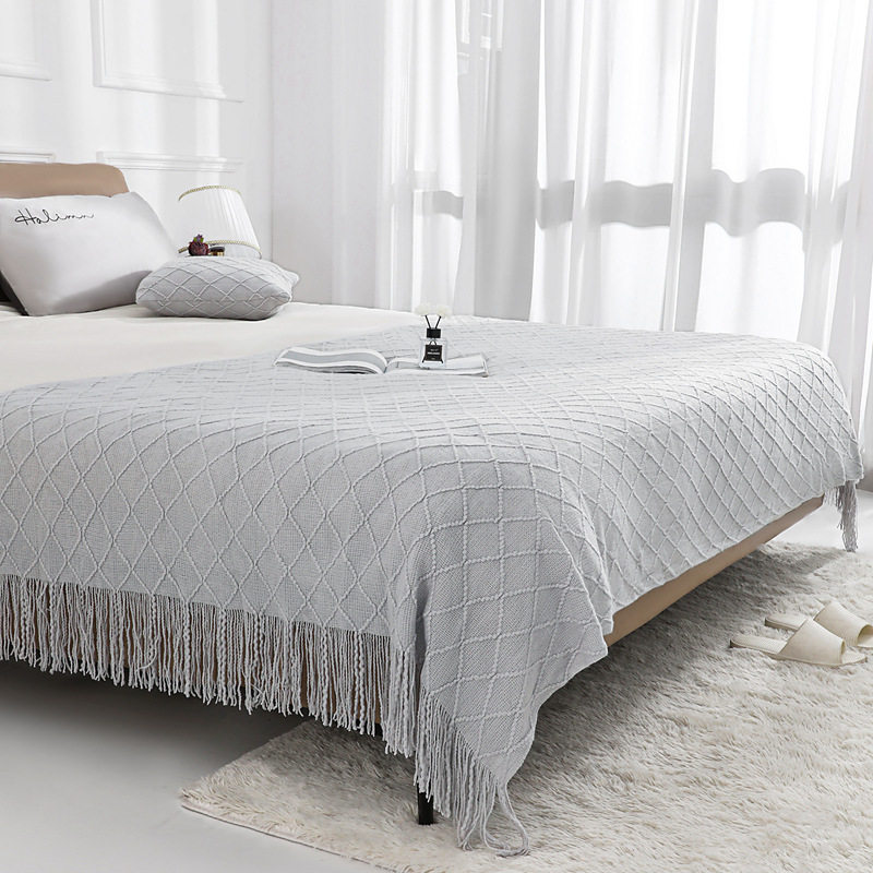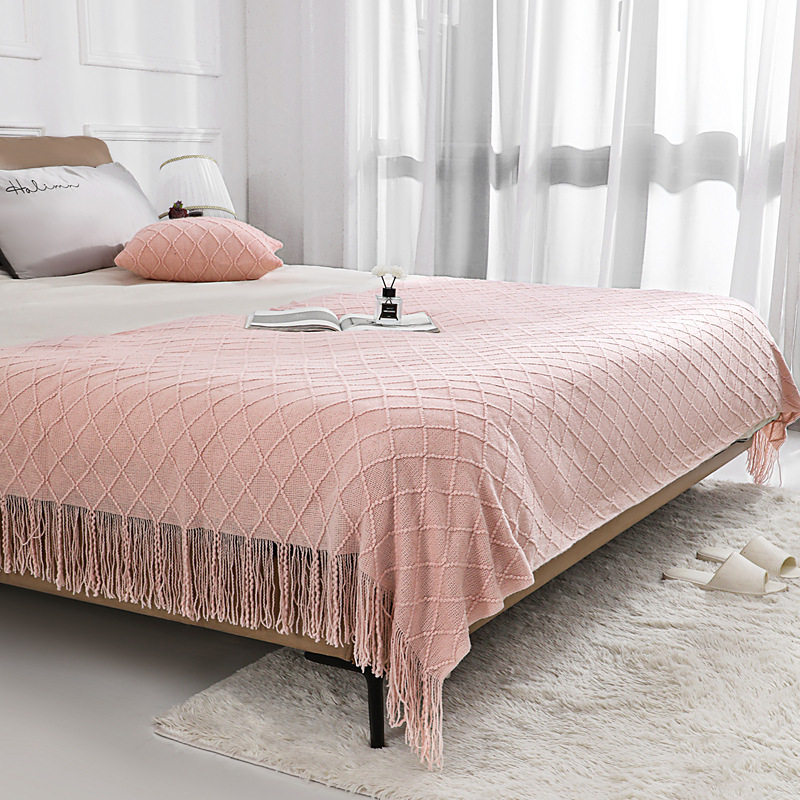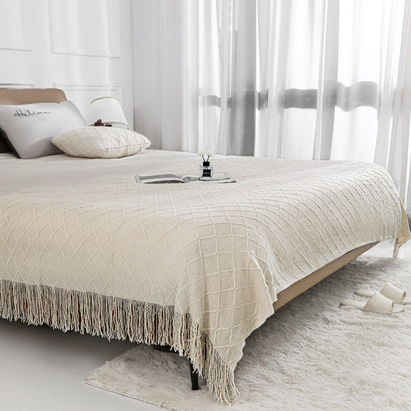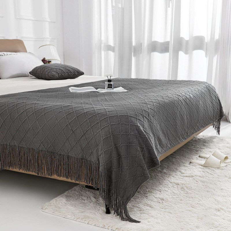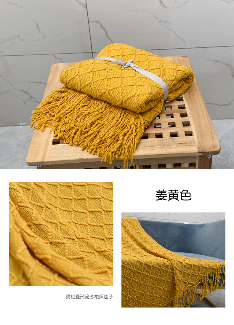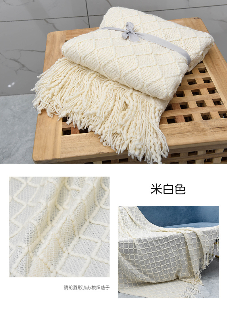 Nordic Retro Rhombus Wool Blanket Solid Color Knitted Blanket Bedside Blanket Bed Sofa Blanket Towel Bedside Towel