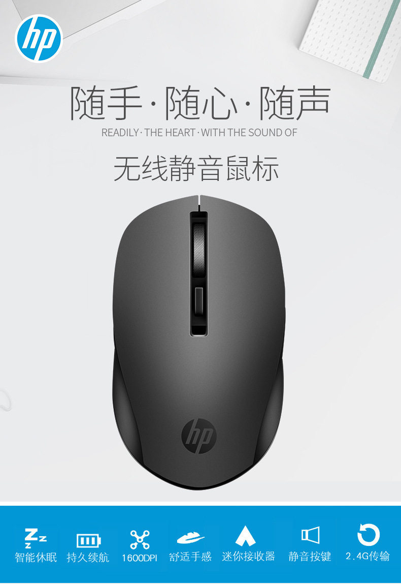 Suitable for Hp S1000Plus Wireless Mouse Office Desktop Notebook Universal Silent Mouse Battery