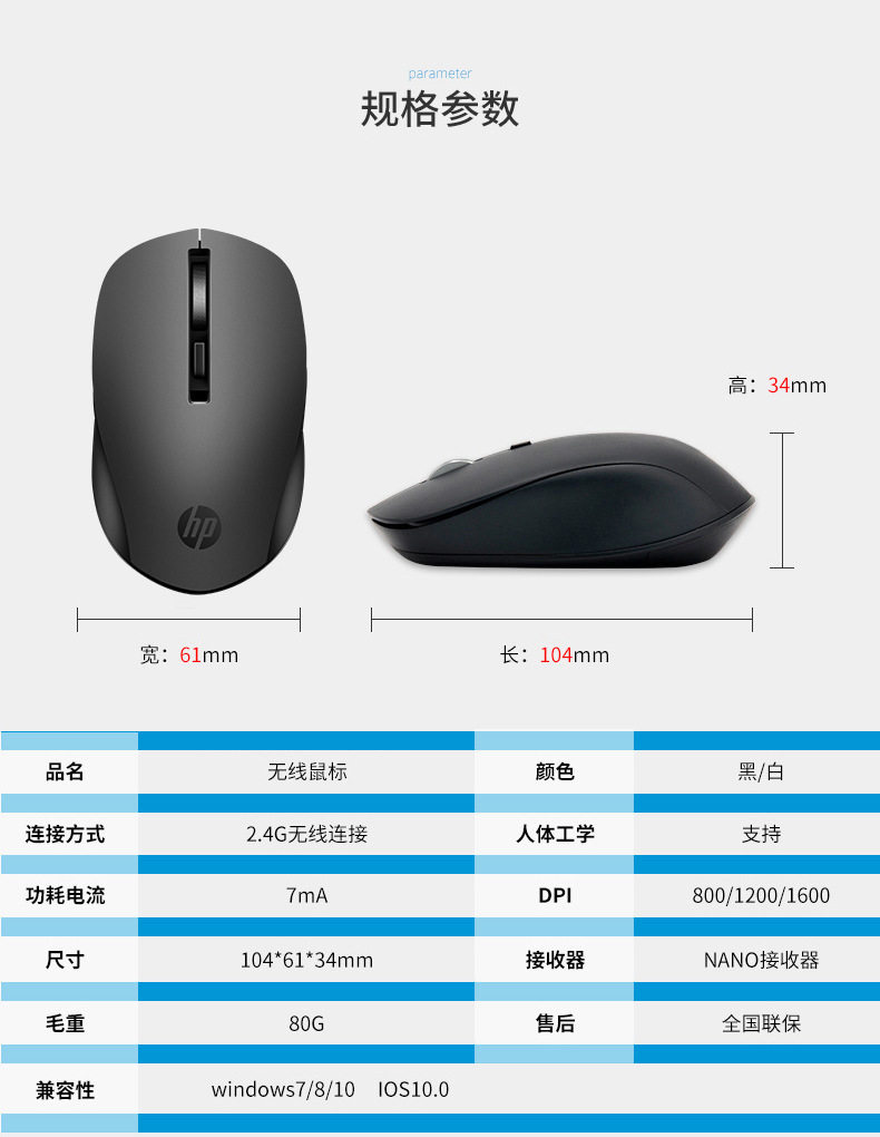 | Color | Hps1000 wireless silent mouse |