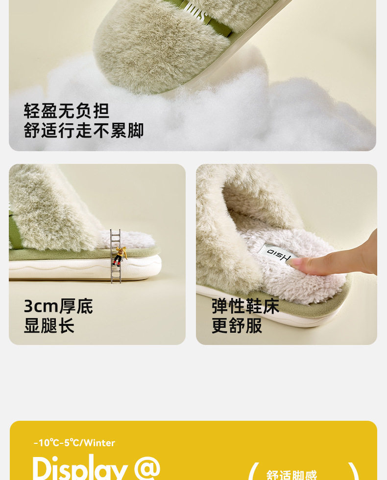 Autumn and Winter New Simple Plush Cotton Slippers Indoor Home Warm Non-Slip Thick Sole Soft and Comfortable Cotton Slippers Couple Style