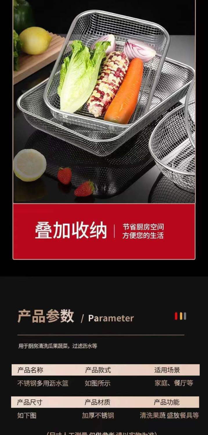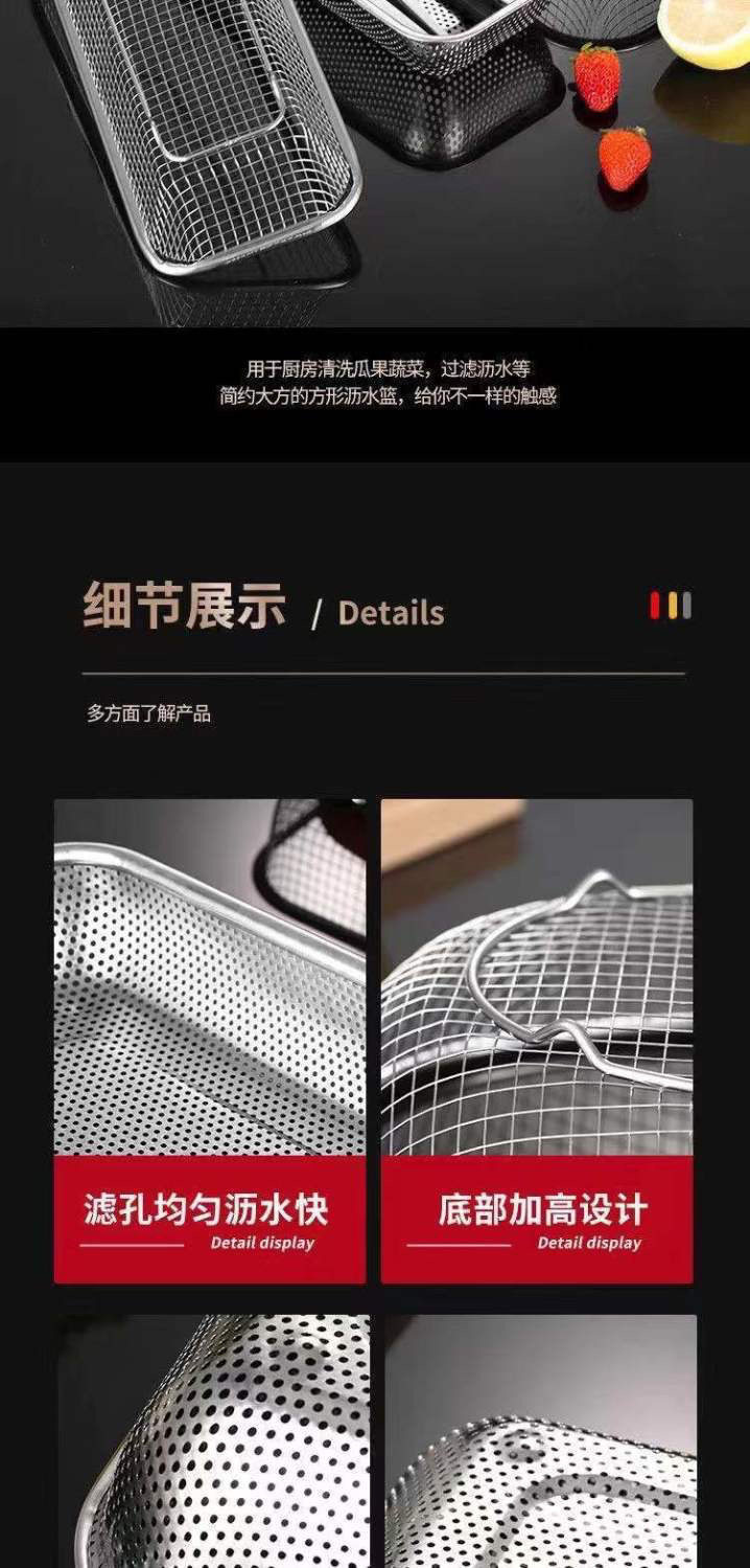 304 Stainless Steel Rectangular Mesh Basket Thick Steel Wire Mesh Sieve Kitchen Vegetable Washing Basket Fruit Water Filter Basket Bowls and Chopsticks Drain Basket