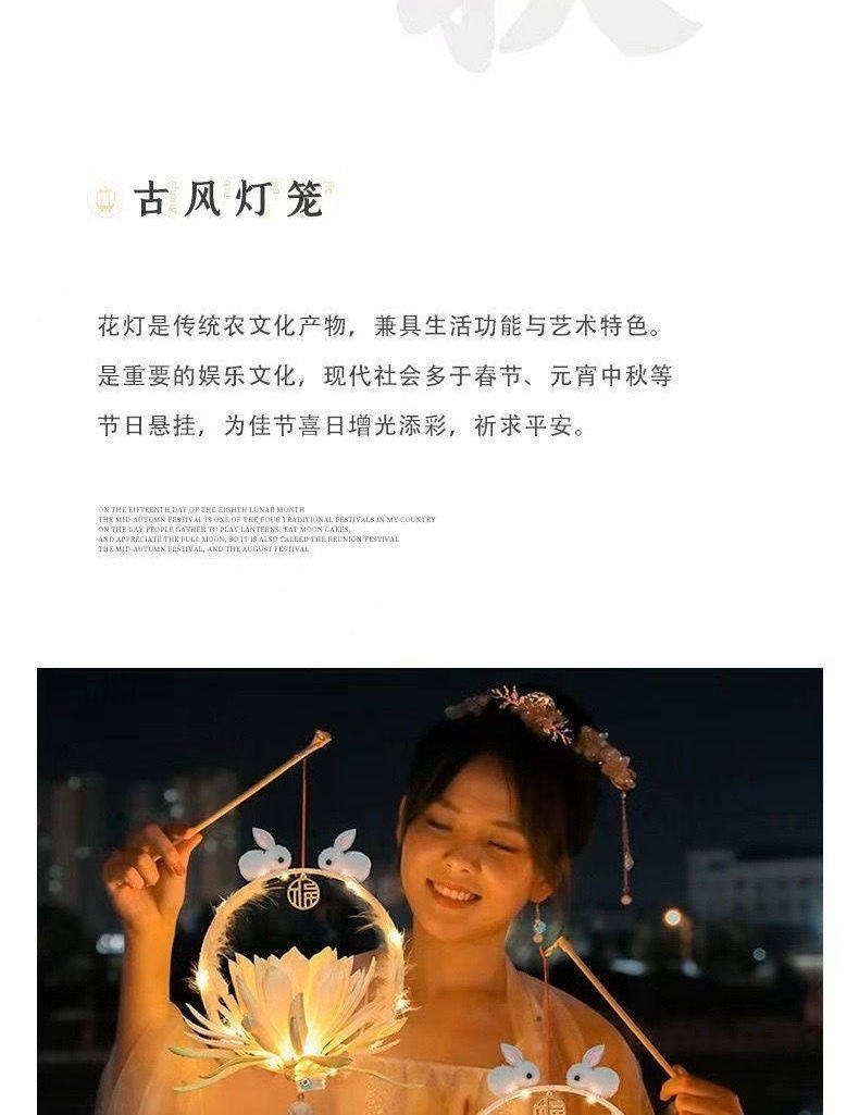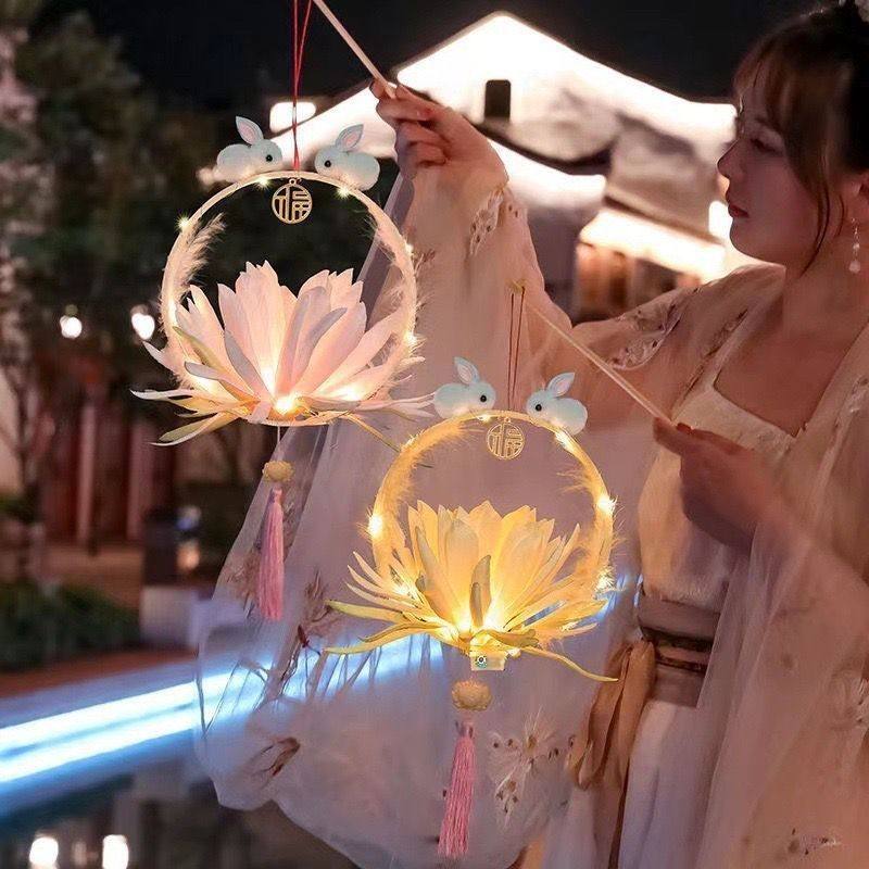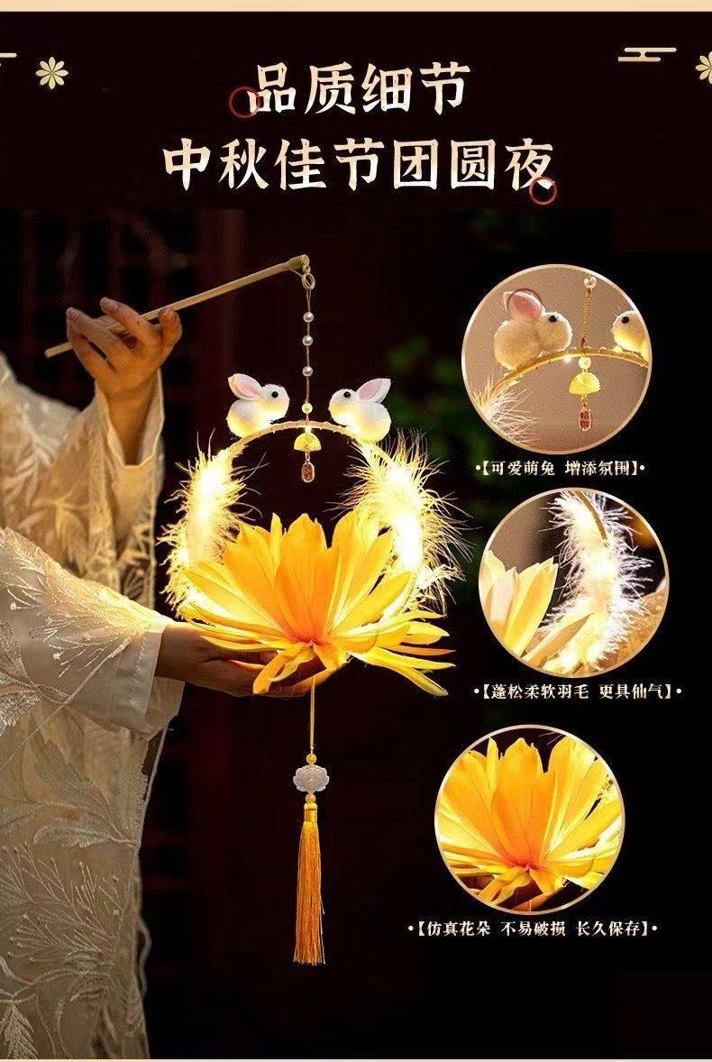 Trendy Mid-Autumn Festival Handheld Lantern Finished Rabbit Lantern Children's Ancient Style Jade Rabbit Lantern Toy Night Market Stall Wholesale
