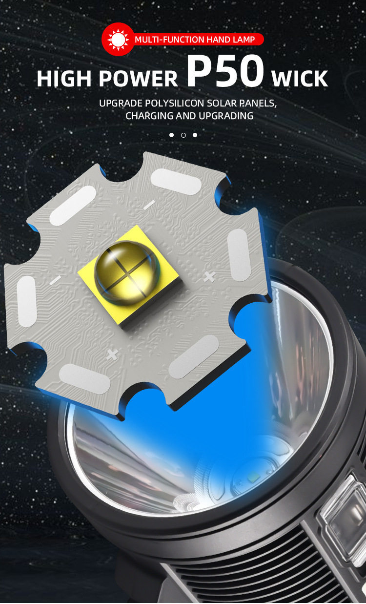 Cross-Border New Multifunctional Solar Portable Searchlight Rechargeable Long-Beam Light High-Power Outdoor Work Light E18