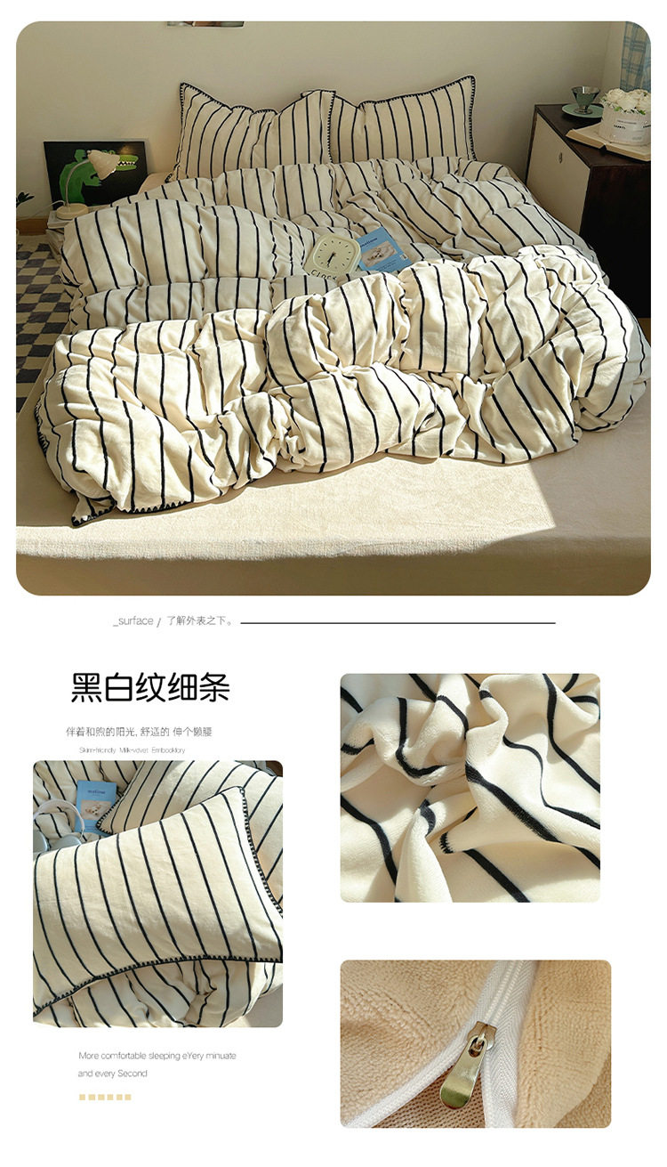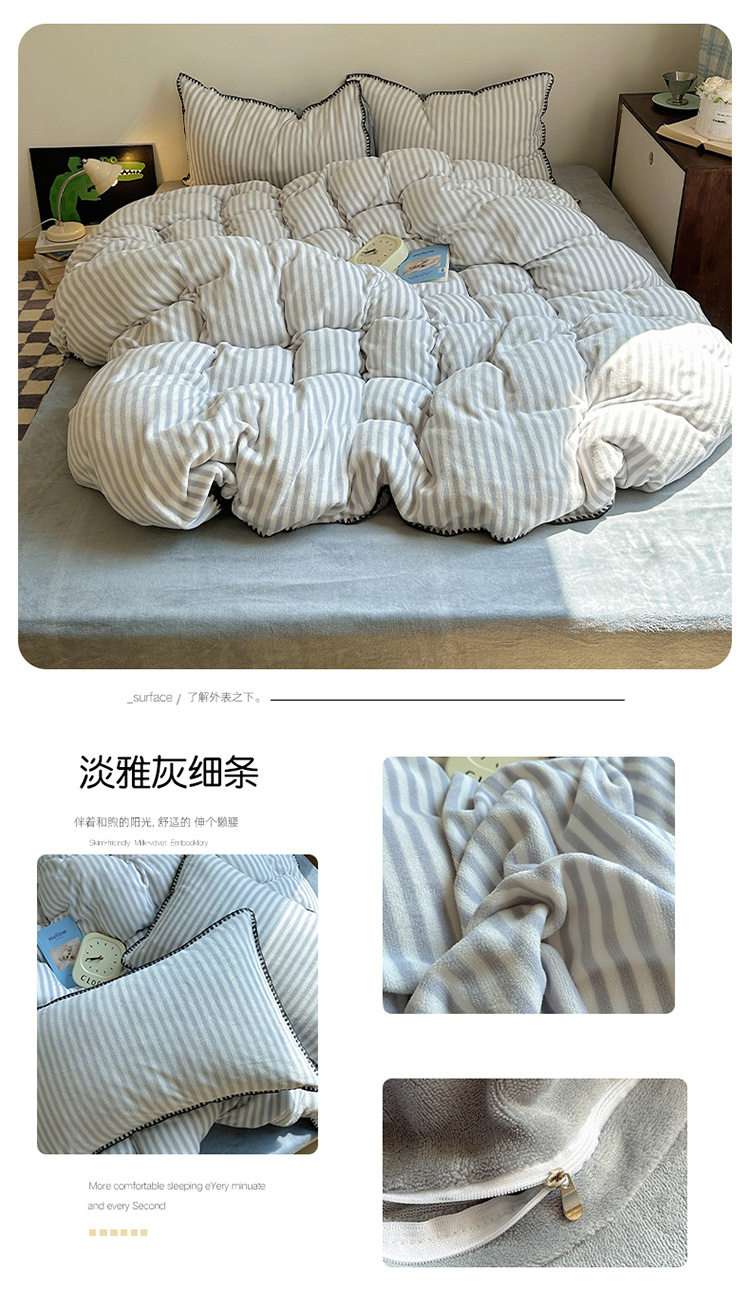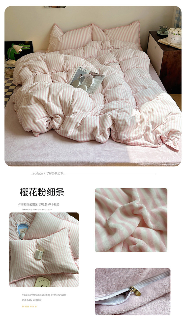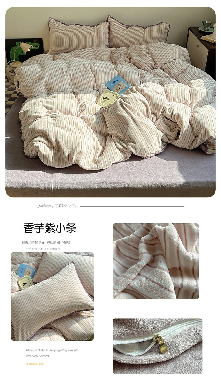 Soft Fufu Autumn and Winter Unprinted Milk Velvet Four-Piece Set Double-Sided Thickeneded Warm Coral Velvet Bed Bed Sheets Quilt Cover Three-Piece Set