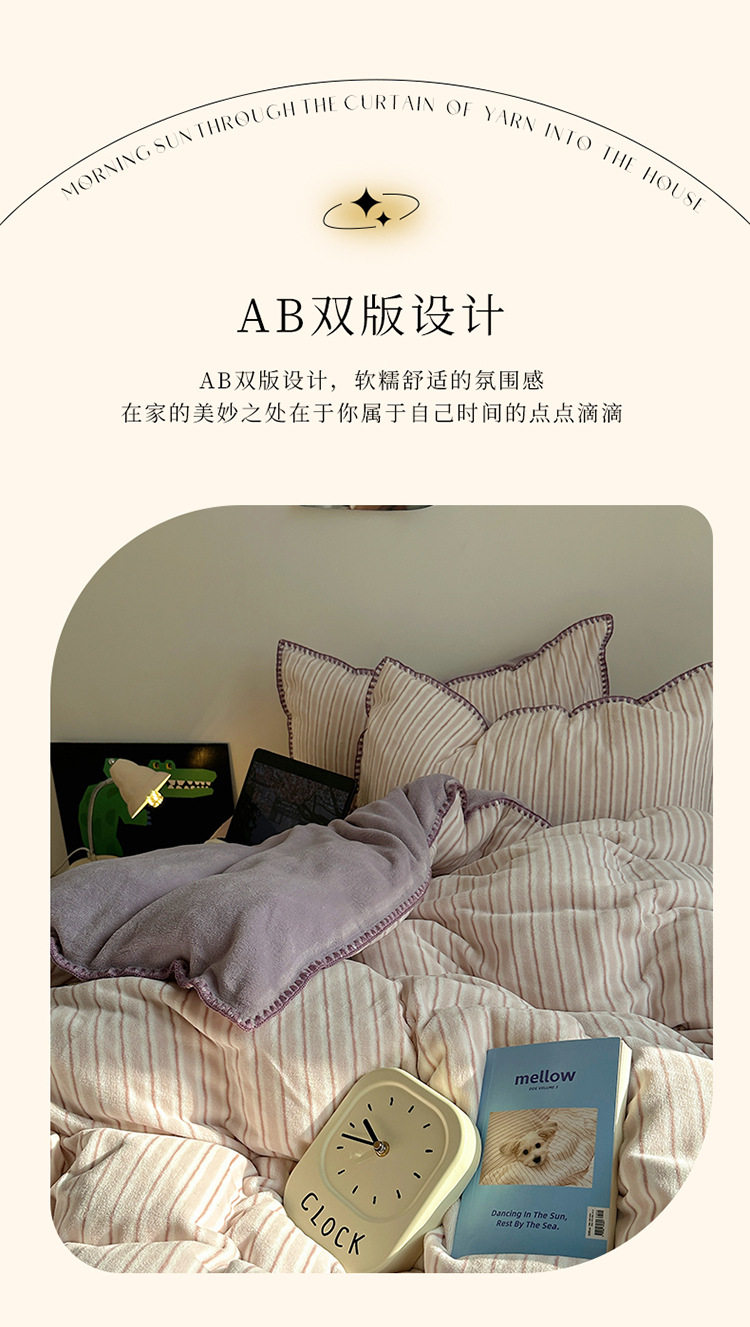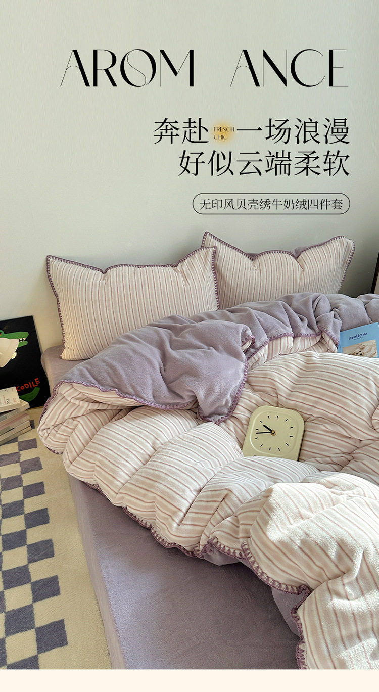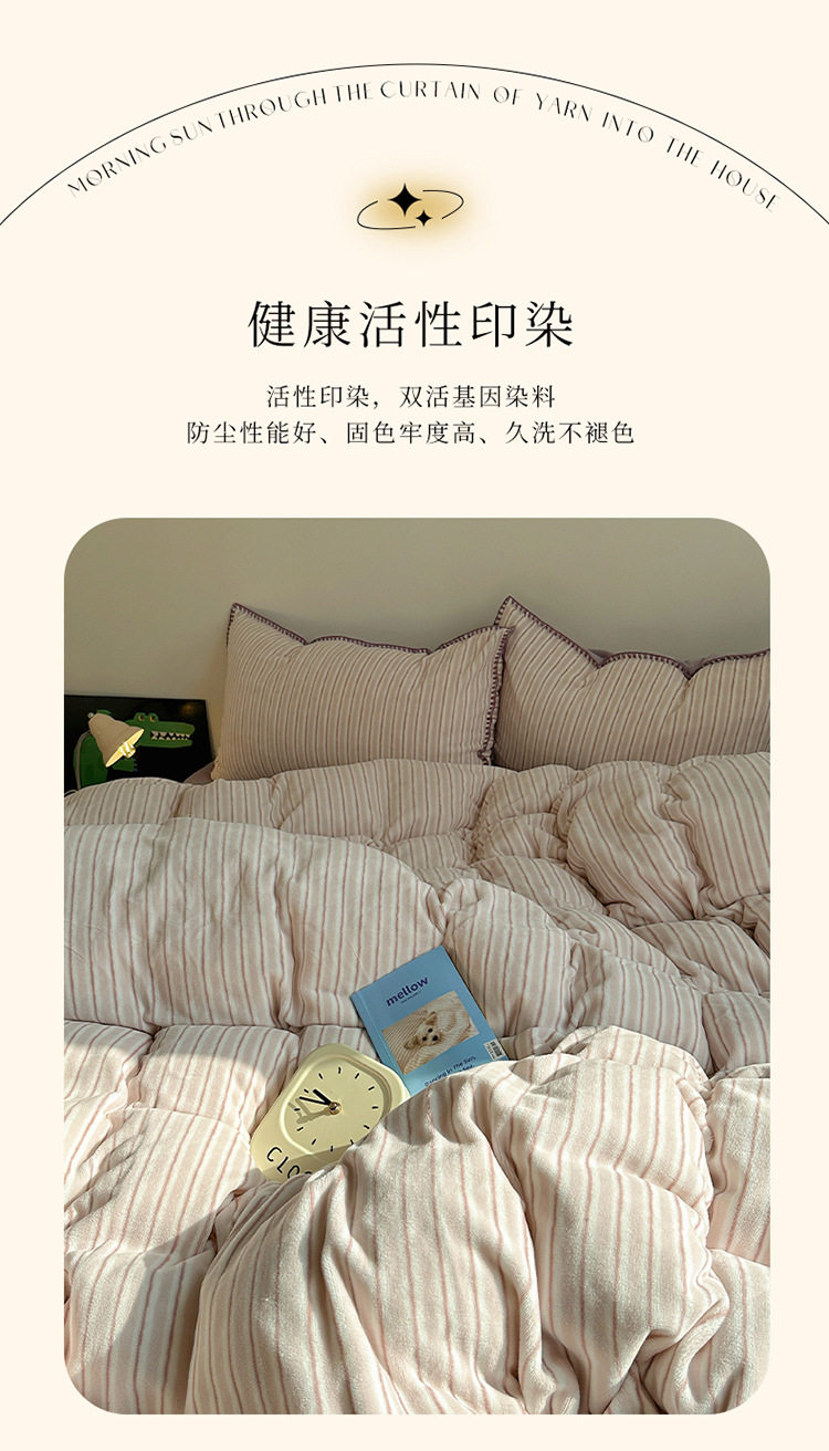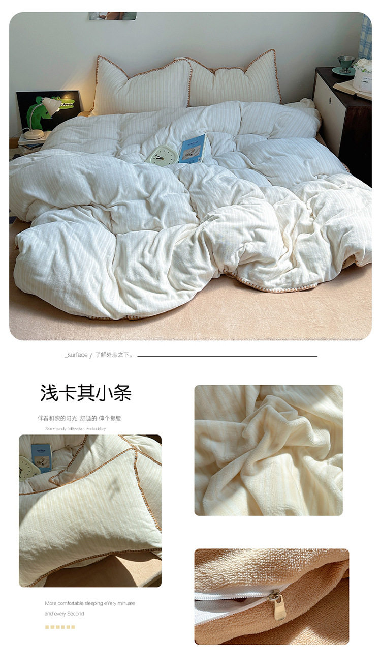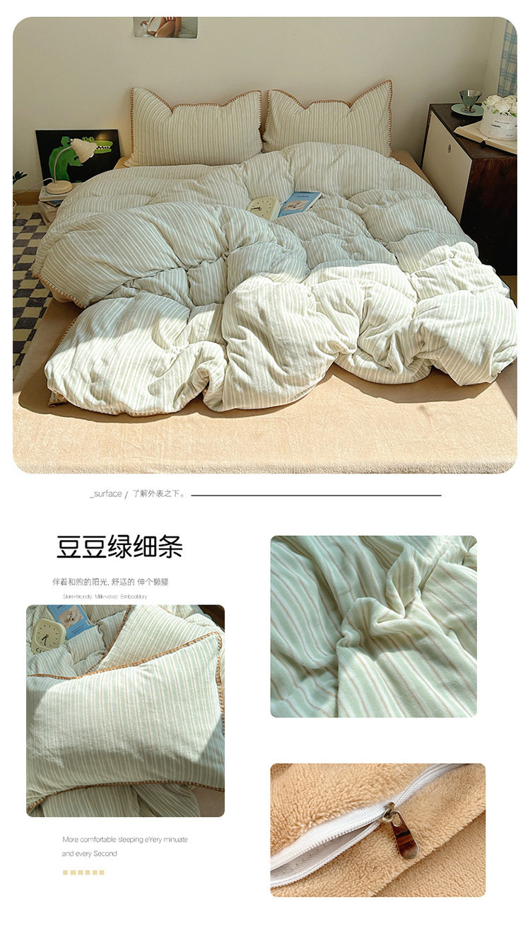 Soft Fufu Autumn and Winter Unprinted Milk Velvet Four-Piece Set Double-Sided Thickeneded Warm Coral Velvet Bed Bed Sheets Quilt Cover Three-Piece Set