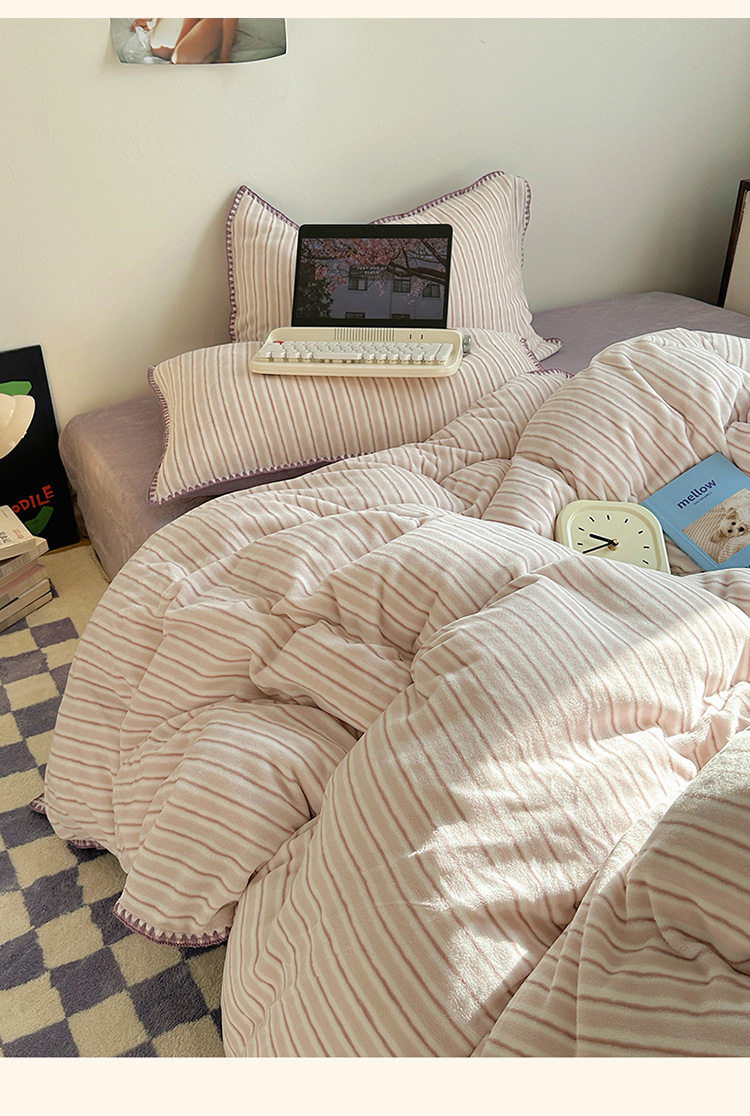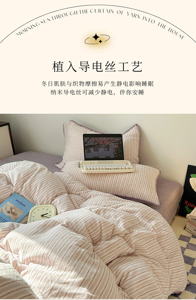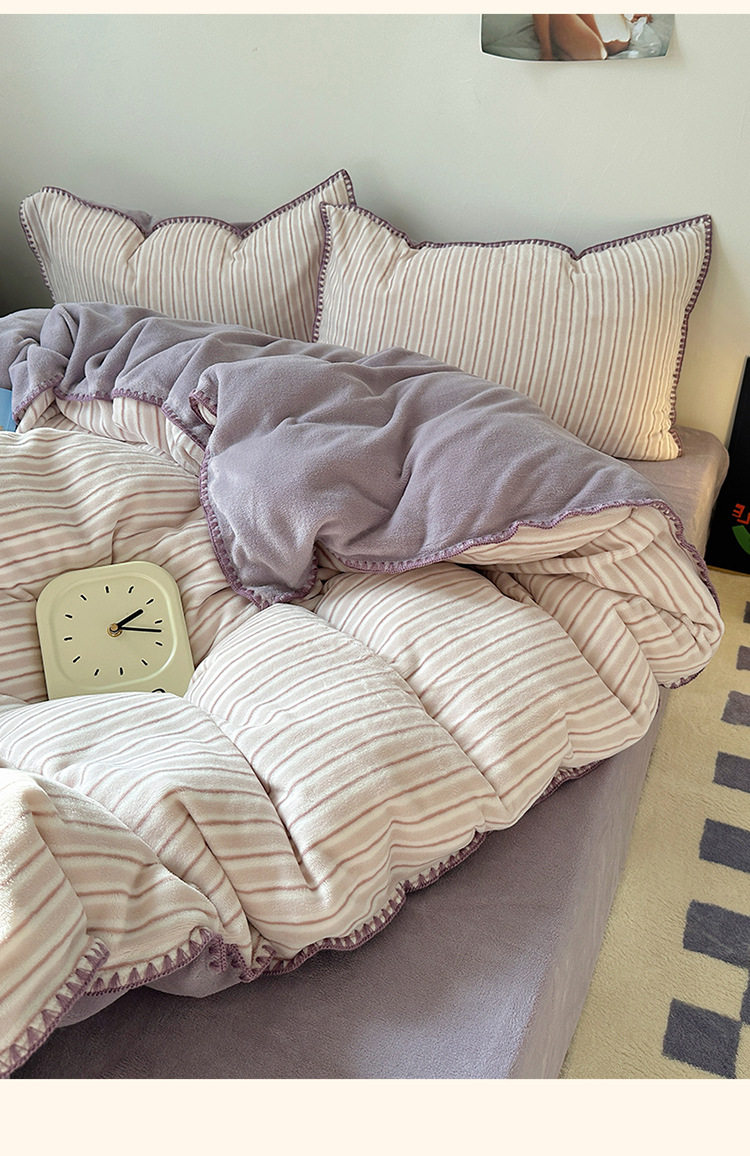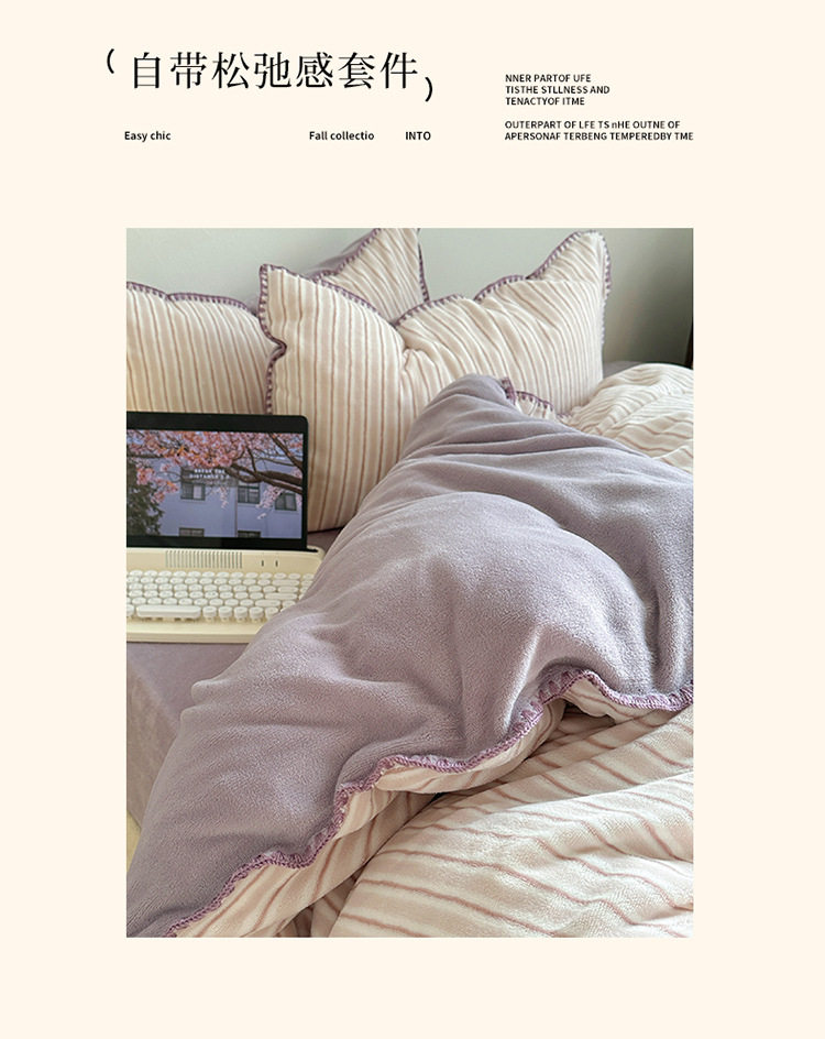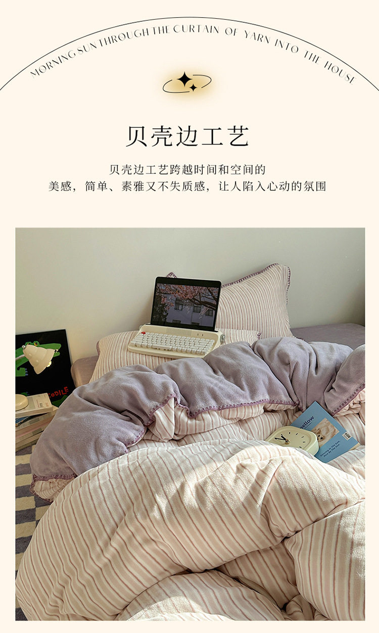 Soft Fufu Autumn and Winter Unprinted Milk Velvet Four-Piece Set Double-Sided Thickeneded Warm Coral Velvet Bed Bed Sheets Quilt Cover Three-Piece Set