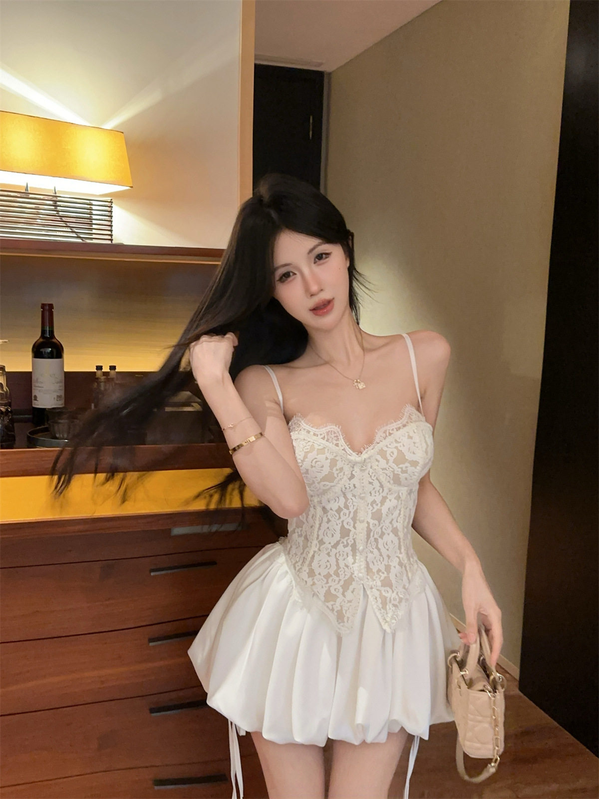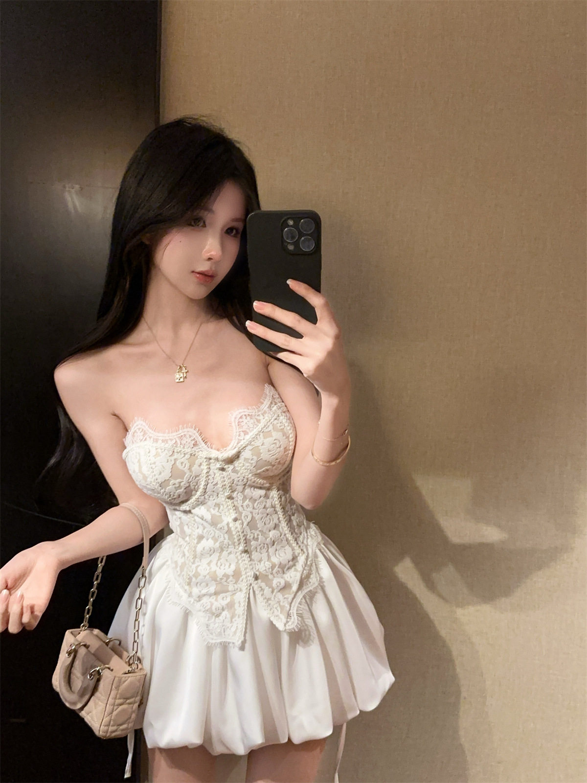 18Yx5831 European and American 2025 Cross-Border Export Lace with Breast Pads, Waist Wrap, Chest Flower Bud Short Skirt Pants Two-Piece Suit
