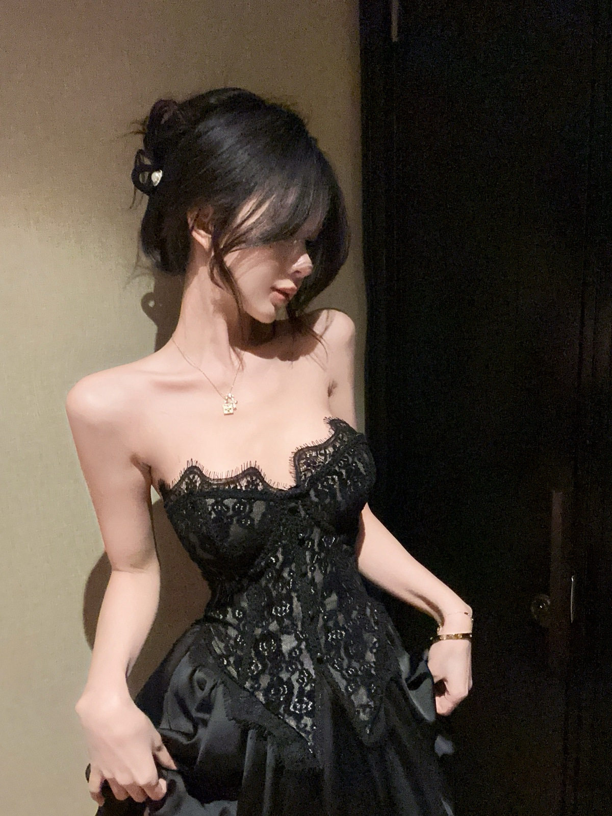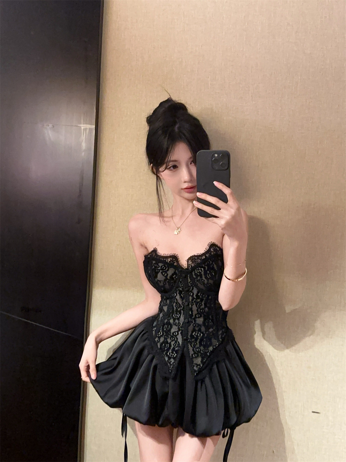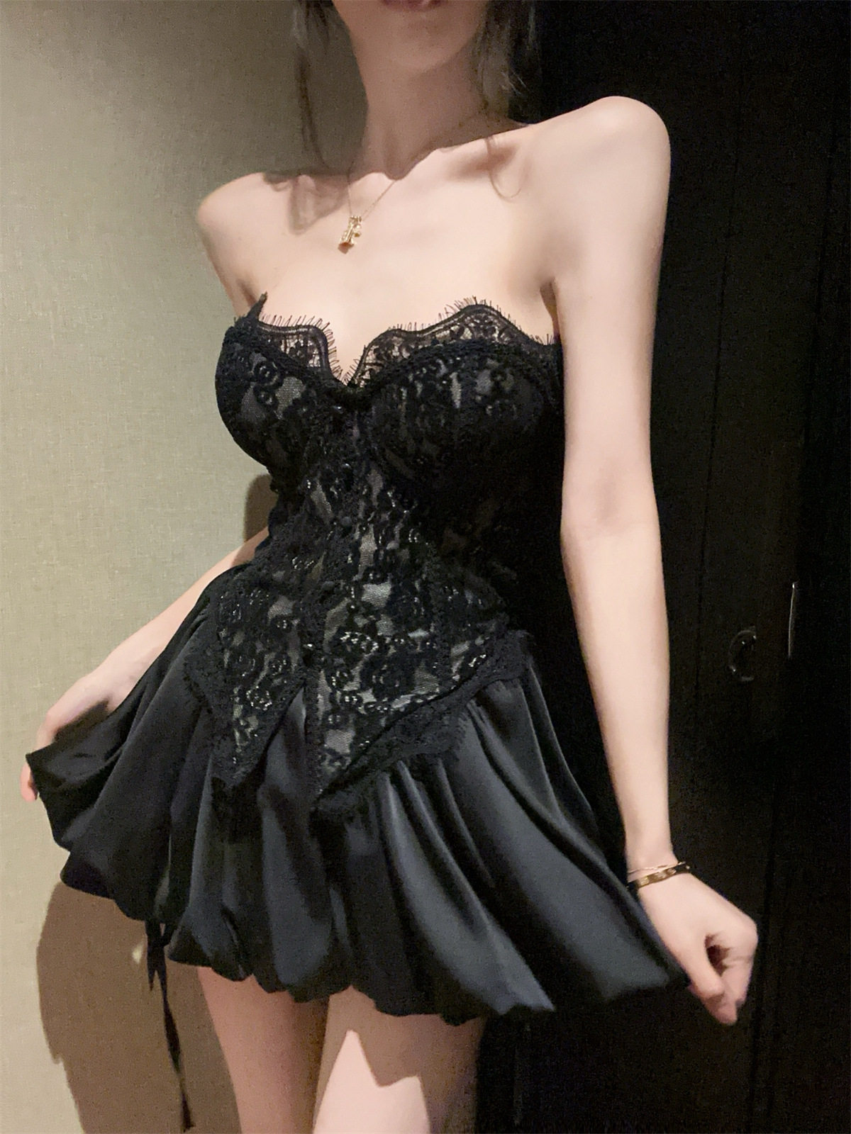 18Yx5831 European and American 2025 Cross-Border Export Lace with Breast Pads, Waist Wrap, Chest Flower Bud Short Skirt Pants Two-Piece Suit
