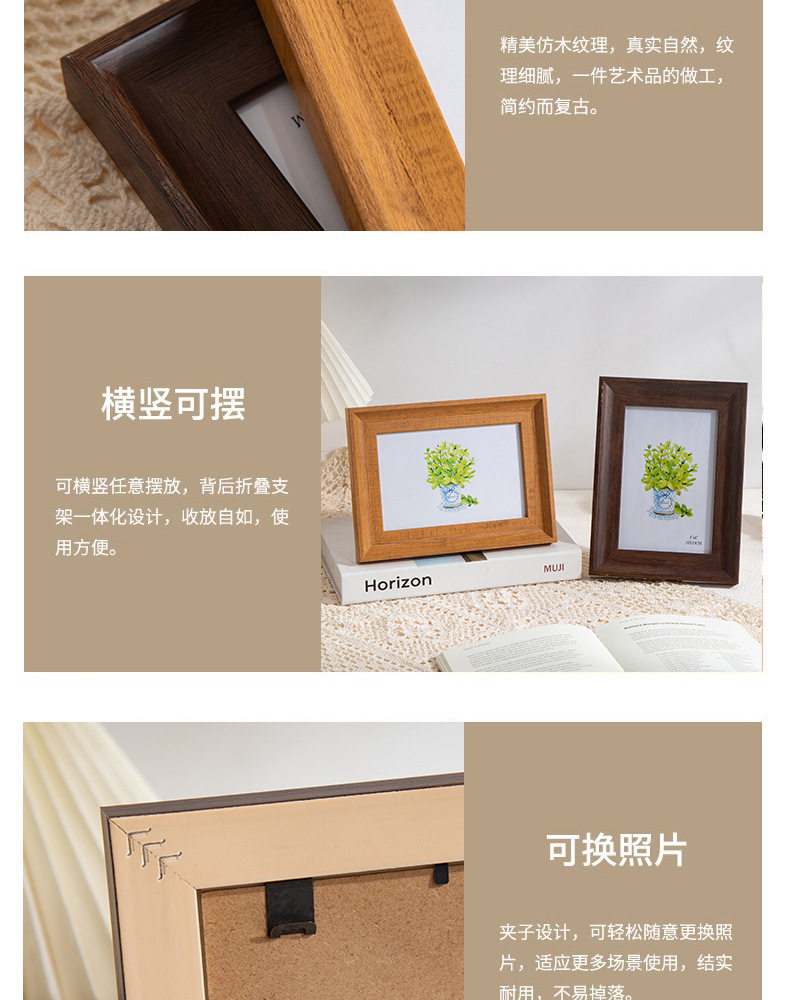 New Retro Simple Photo Frame for Wall Hanging 6-Inch 7inch 8inch Multiple Sizes Customizable Picture Frame Table Decoration Manufacturer