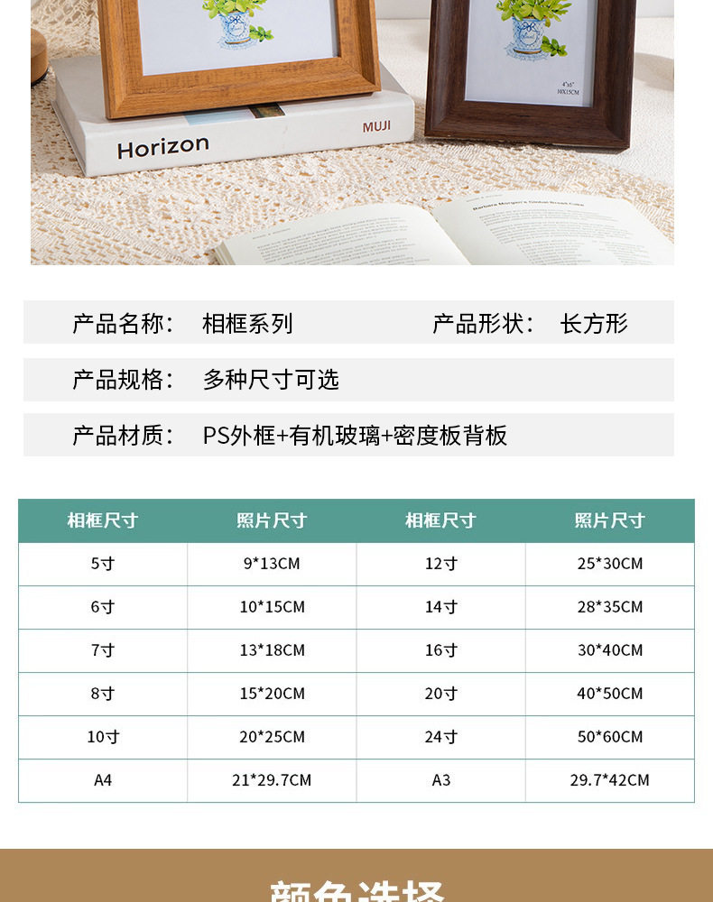| Inner frame size | 5inch (9*13cm) table setting,6inch (10*15cm) table setting,7inch (13*18cm) table and wall hanging,8inch (15*20cm) table and wall hanging,10inch (20*25cm) table and wall hanging,A4 (21*29.7) table and wall hanging |