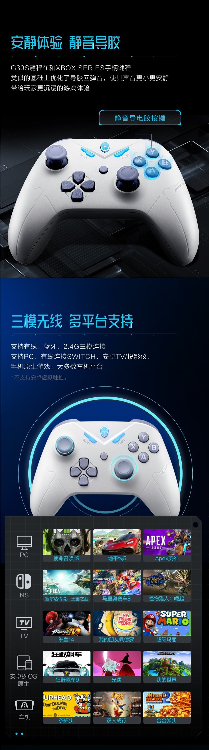 | Product color | G30s-ice blue [wireless three-mode + receiver + hall trigger] |