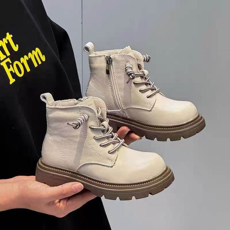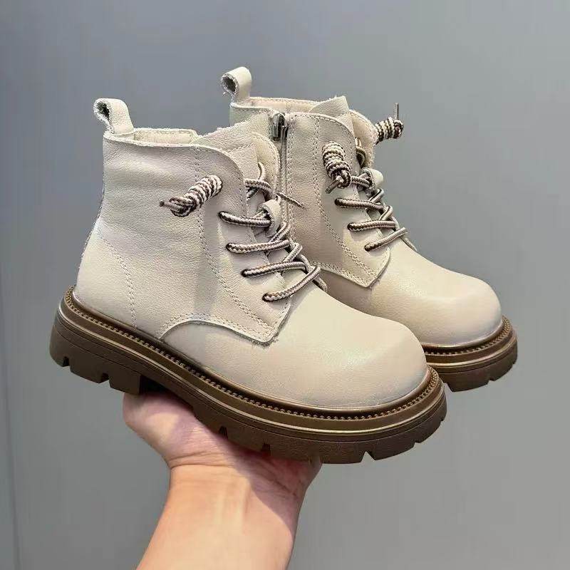 First-Layer Cowhide Versatile Boots 2025 Autumn and Winter New Style British Style Fashion Short Boots for Boys and Girls Low-Cut Cotton Boots