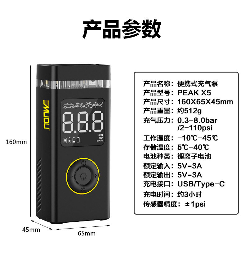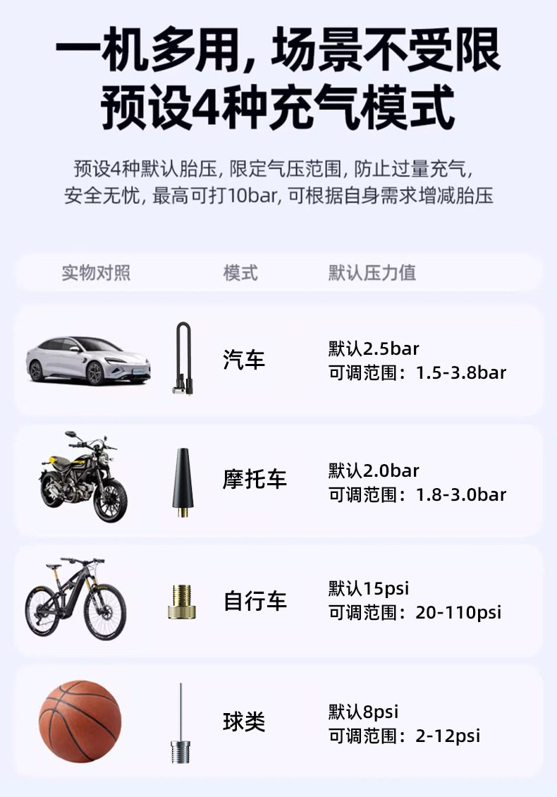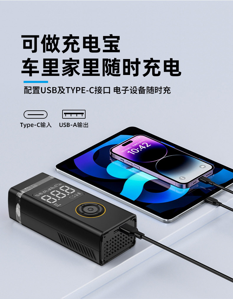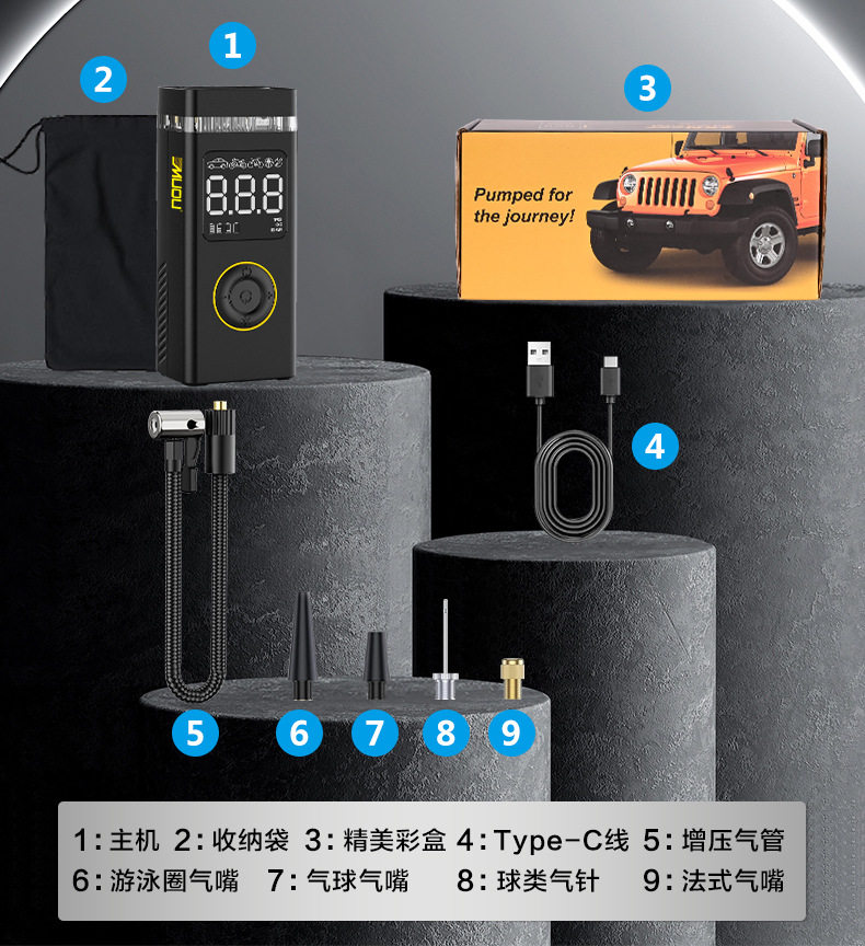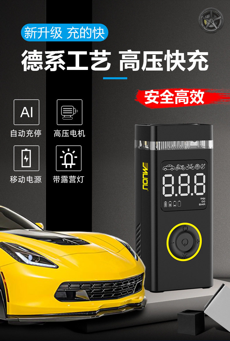 Car-Mounted Electric Air Pump, Tire Pressure Detection, Bicycle, Electric Vehicle, Basketball, Wireless