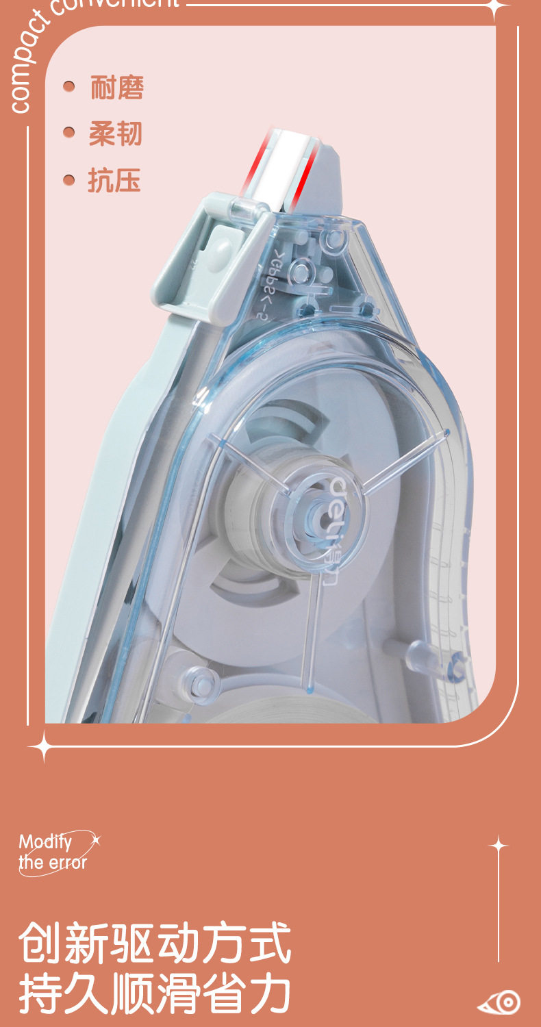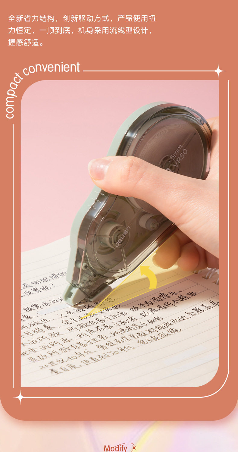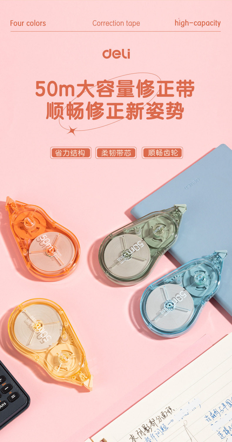 Deli Correction Tape, Ultra-Large Capacity, Silent and Smooth Correction Tape, High-Looking Student Stationery Supplies Correction Tape Wholesale