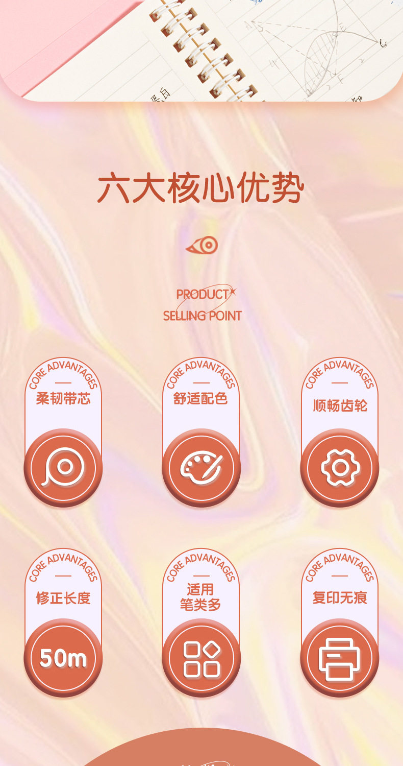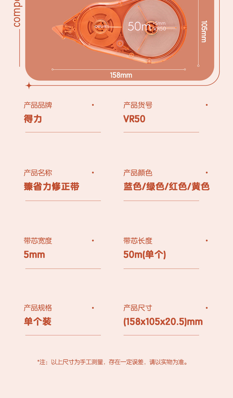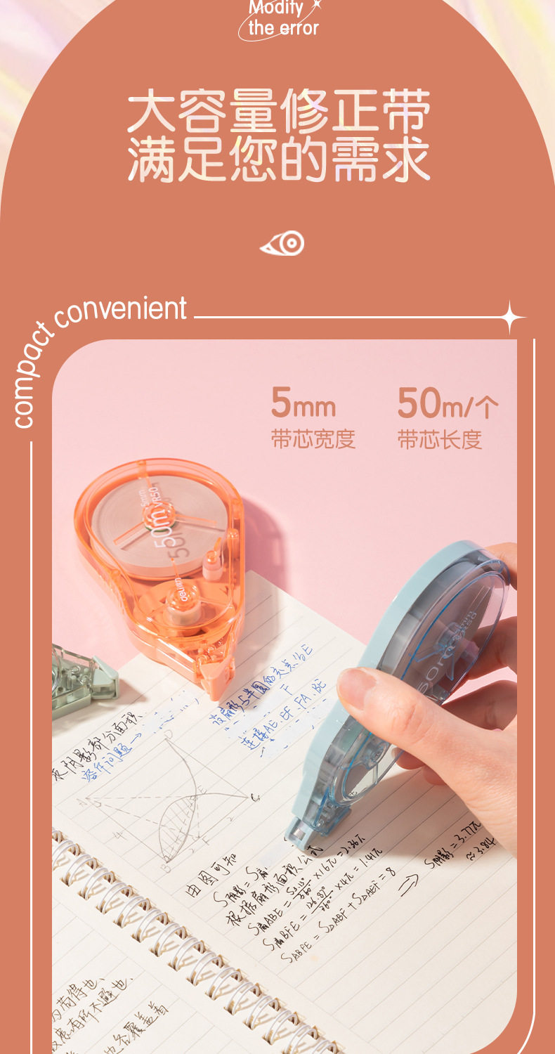 Deli Correction Tape, Ultra-Large Capacity, Silent and Smooth Correction Tape, High-Looking Student Stationery Supplies Correction Tape Wholesale