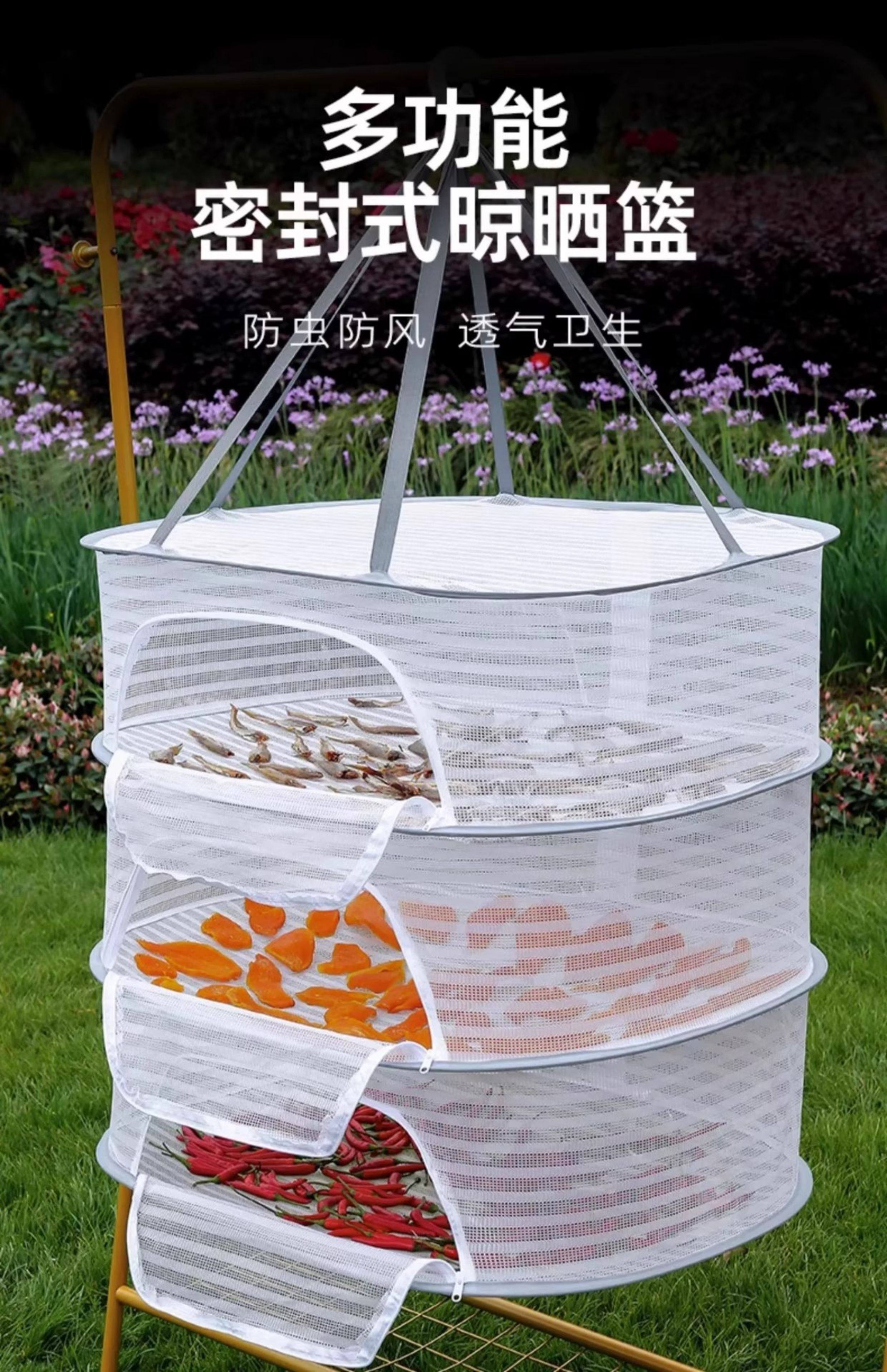 Multi-Functional Household Drying Net for Drying Fish, Insect-Proof Air-Drying Net, Windproof Drying Net for Clothes, Foldable Closed Drying Net, Blue