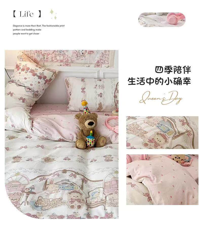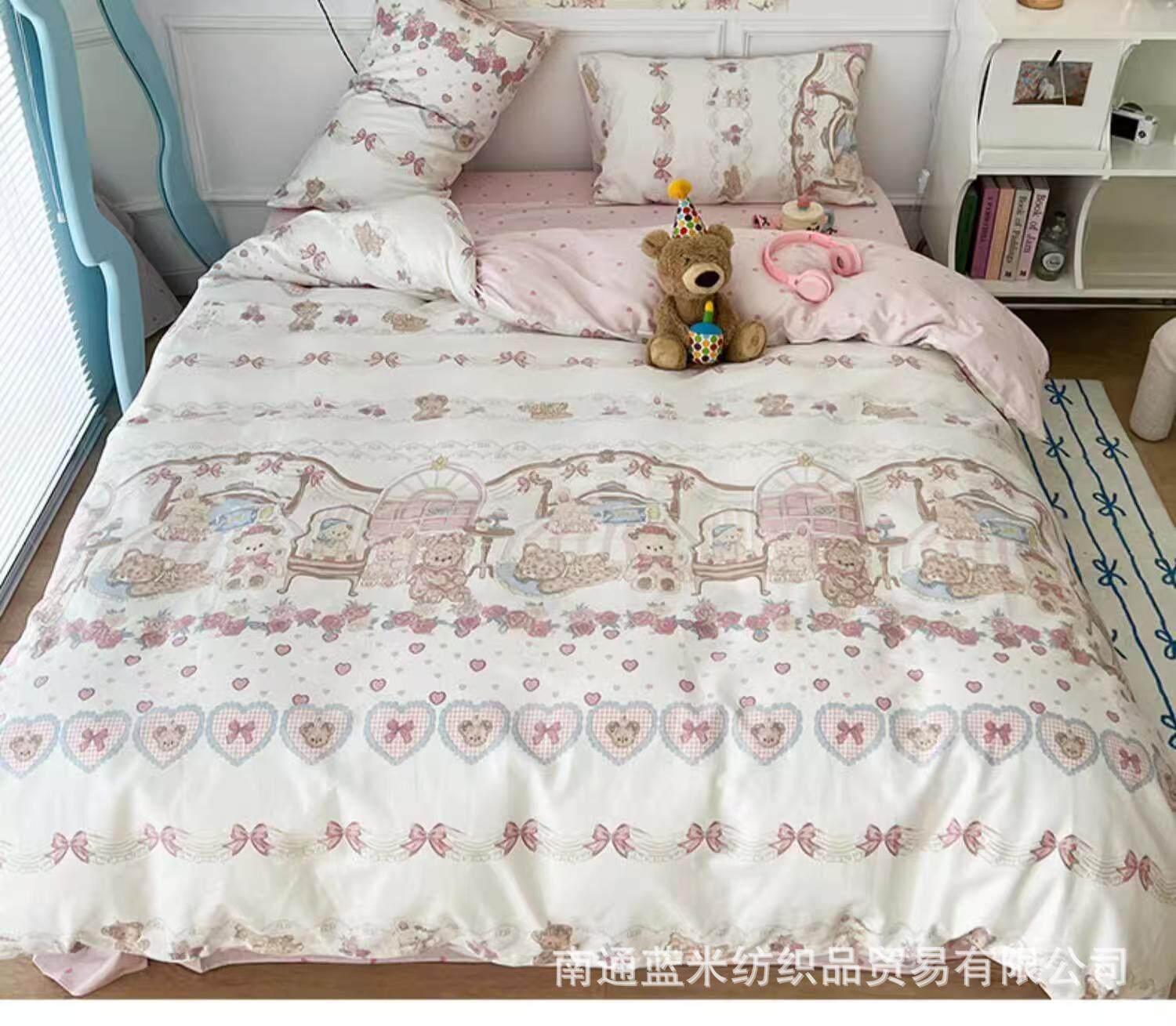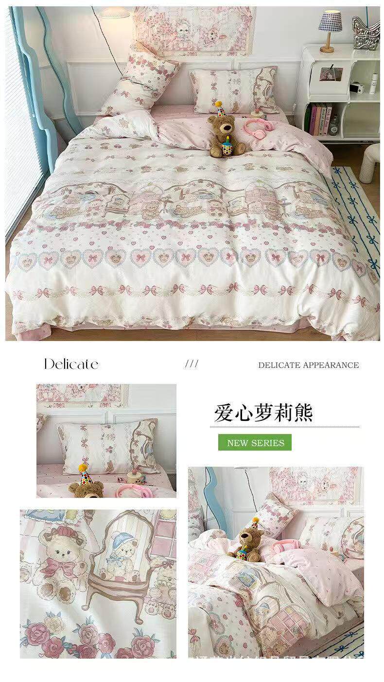 Cartoon Cute Lolita Cross-Border Foreign Trade Special Four-Piece Set for Home Washing Brushed Dormitory Three-Piece Set Amazon