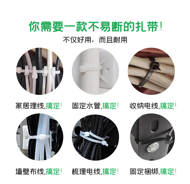 [National Standard] Nylon Cable Ties Large, Medium and Small Black and White Easy-Pull Straps Plastic Cable Ties